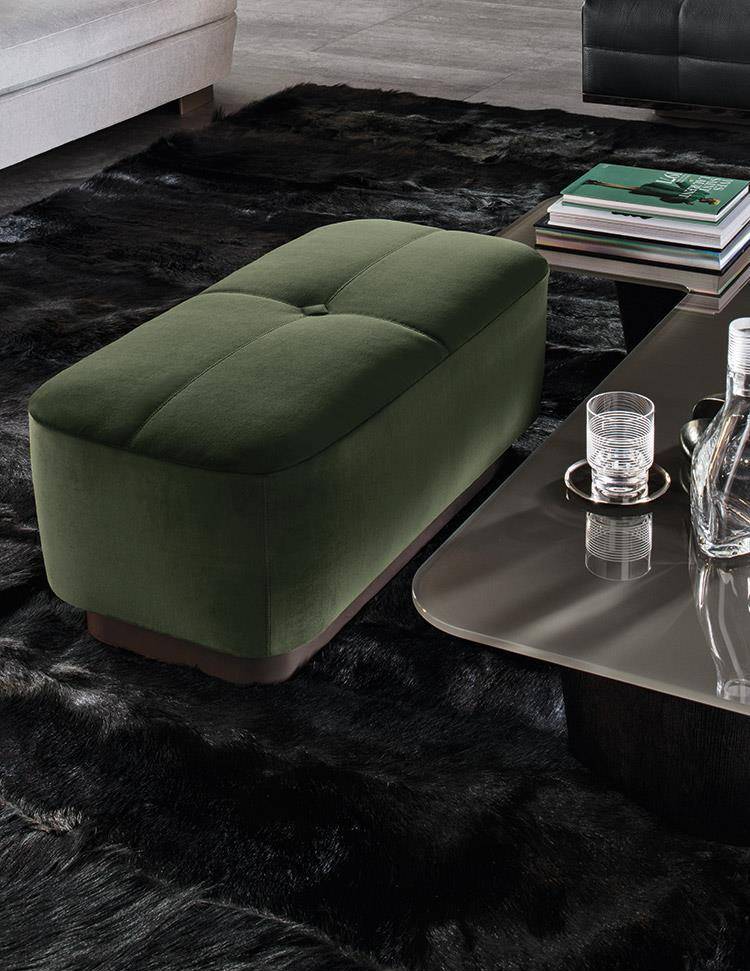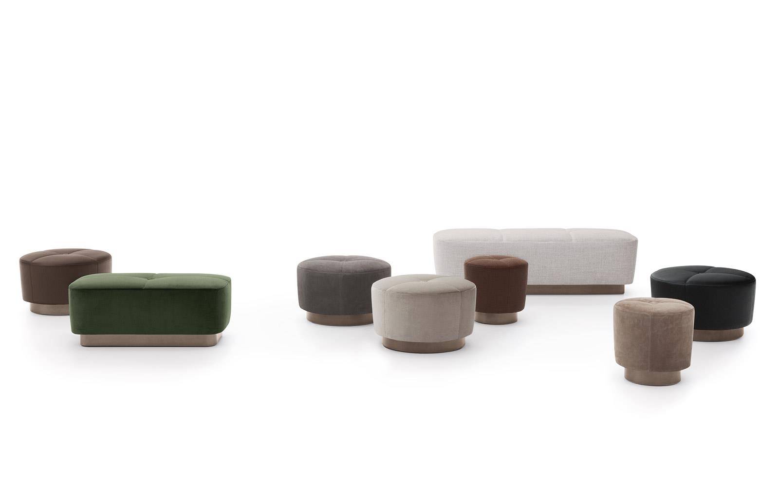 The extensive Jacques family also includes ottomans in various shapes and sizes, all distinguished by an elegant stitched motif and a square decorative button.
