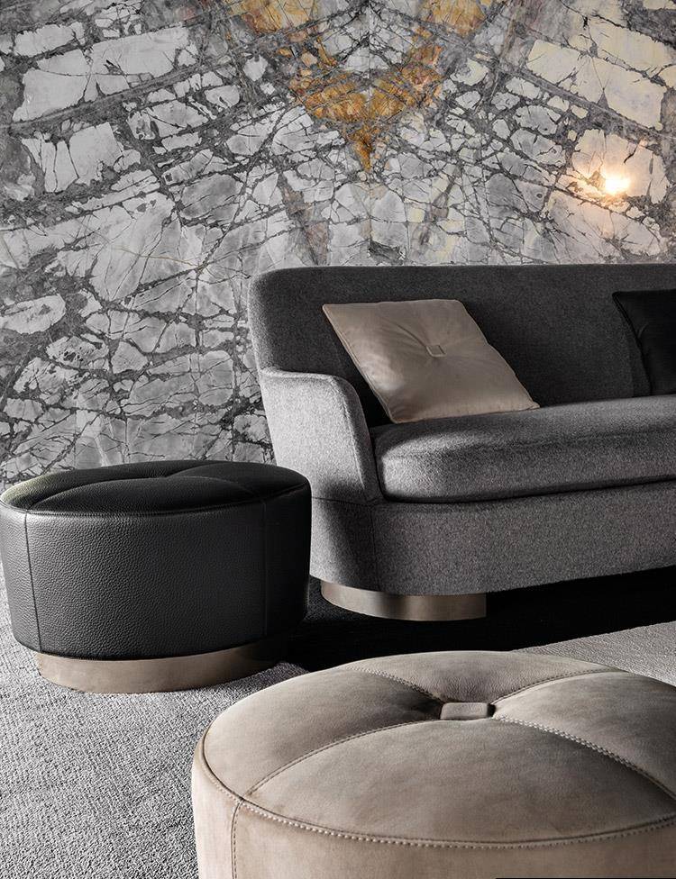 All of the seating elements share the enveloping lines that offer a pleasant sensation of welcoming warmth, thanks to the soft cushioning in the seats and backrests. Structural perfection and flawless tailoring underscore the high level of expertise achieved by the company over the years and are the consummate expression of its masterful craftsmanship.