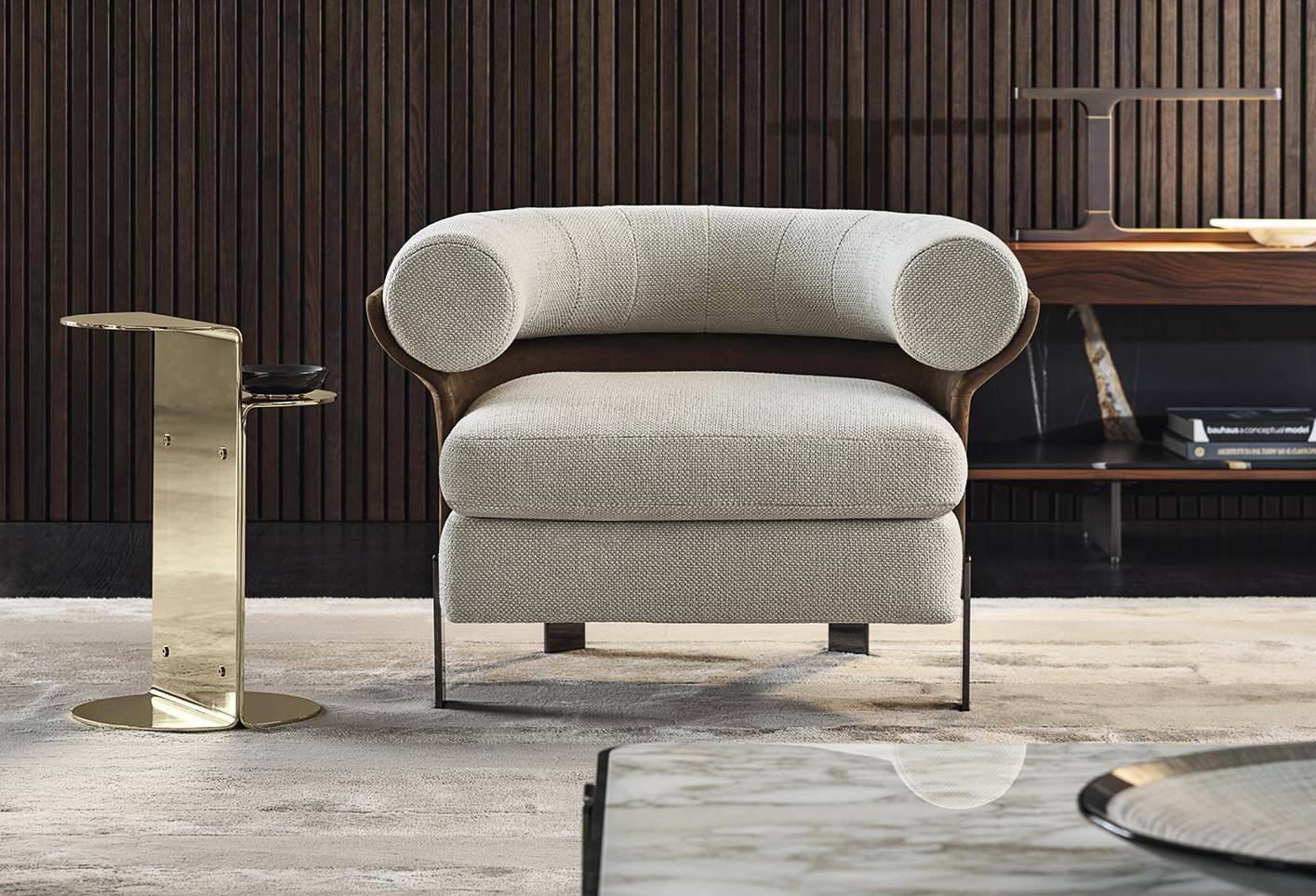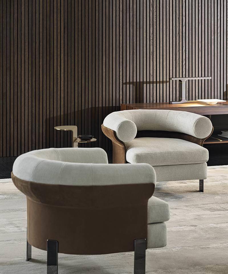 Mattia is inspired by the reinterpretation of a creative sign from the early Seventies, offering a modern take on a design from the Minotti archive.