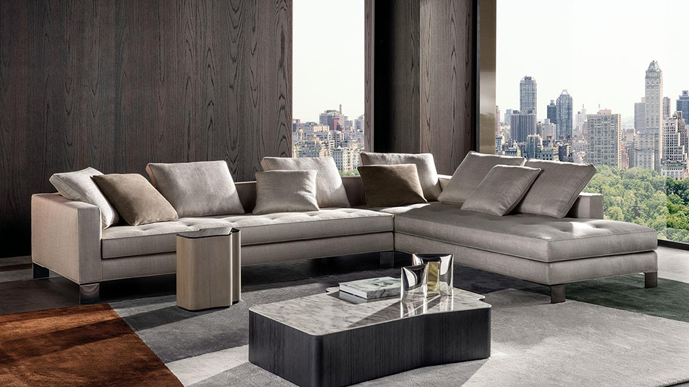 Pollock is an extremely versatile sofa that can play a starring role in any setting and be dressed with cool elegance in all the fabrics and leather options the exclusive Minotti collection.