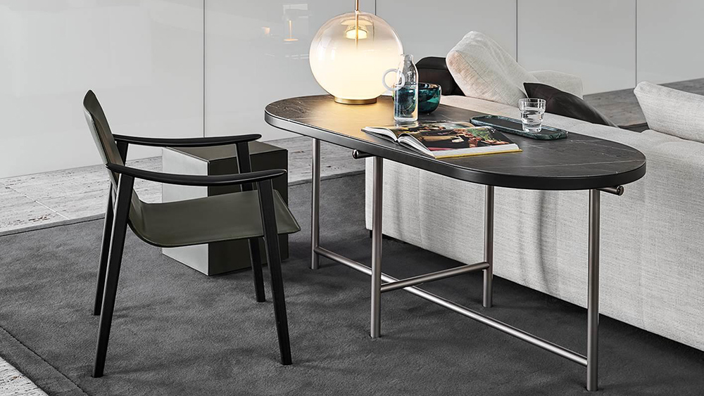 The creative synergy between Minotti and Oki Sato was expressed in 2018 with the launch of the Tape collection - a family of seats and tables characterized by a light silhouette and a strong identity - and the Ring and Waves coffee tables.