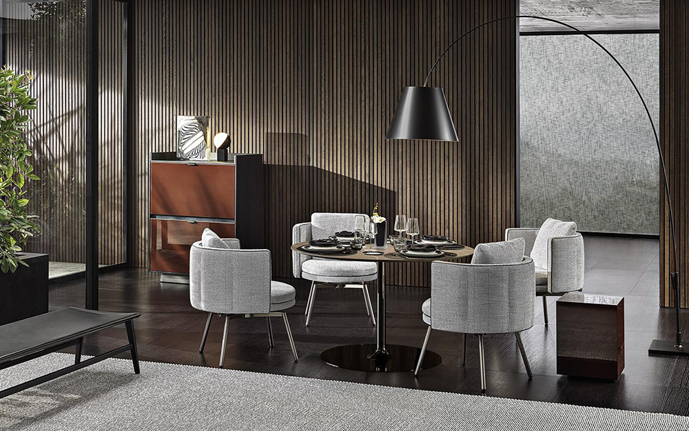 In 2020, Oki Sato designed the Torii family of seats and furnishing accessories, available for both residential and Hospitality settings: a very detailed project that plays around with the roundness of the volumes, the thinness of the profiles and the apparent formal simplicity, at the same time highlighting the haute couture approach in Minotti’s distinctive sartorial craftsmanship.