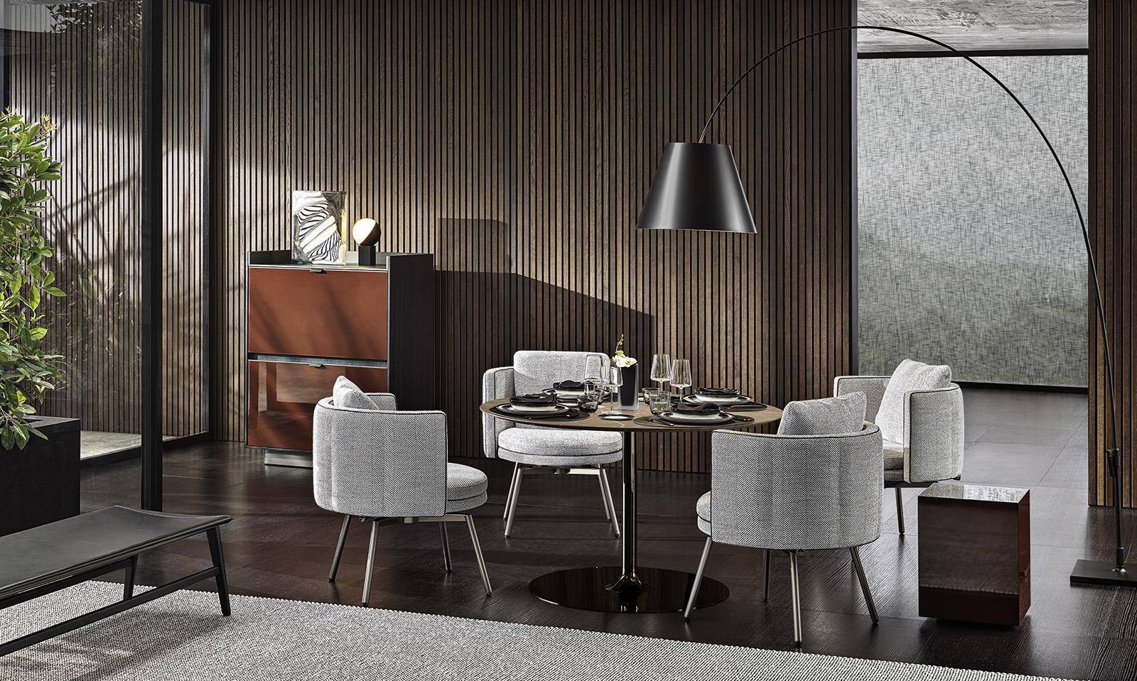 In 2020, Oki Sato designed the Torii family of seats and furnishing accessories, available for both residential and Hospitality settings: a very detailed project that plays around with the roundness of the volumes, the thinness of the profiles and the apparent formal simplicity, at the same time highlighting the haute couture approach in Minotti’s distinctive sartorial craftsmanship.