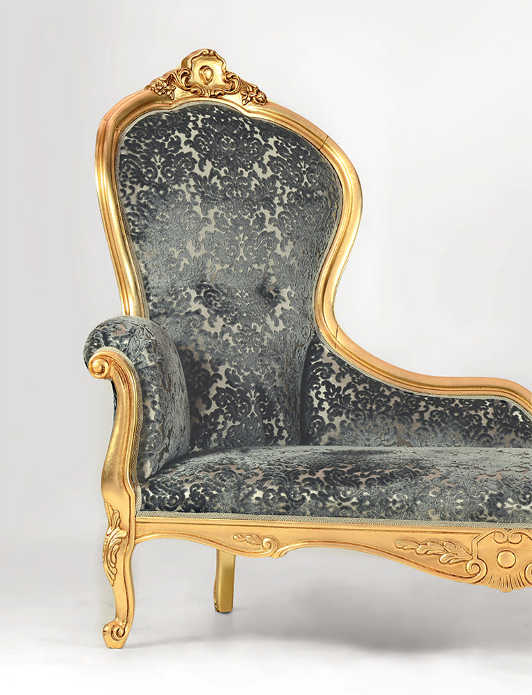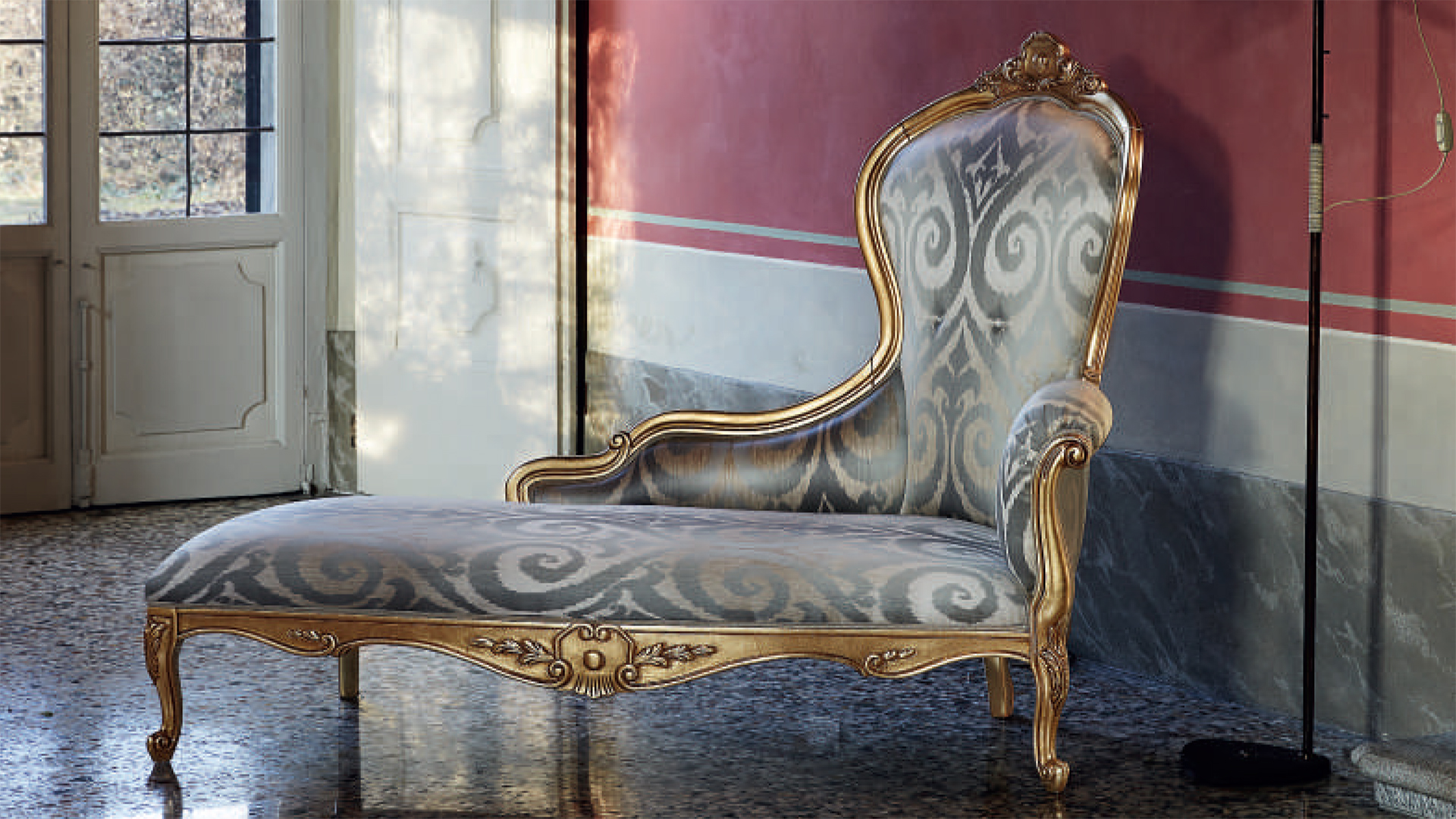 The couch Dormeuse, from the Italian manufacturer Silik. The model is made on a frame of wood. Upholstery this model - textile with floral designs. Decoration is the decorative carving handmade. Upholstery and trim to order in the manufacturer`s catalogue. The model is made in classic style.