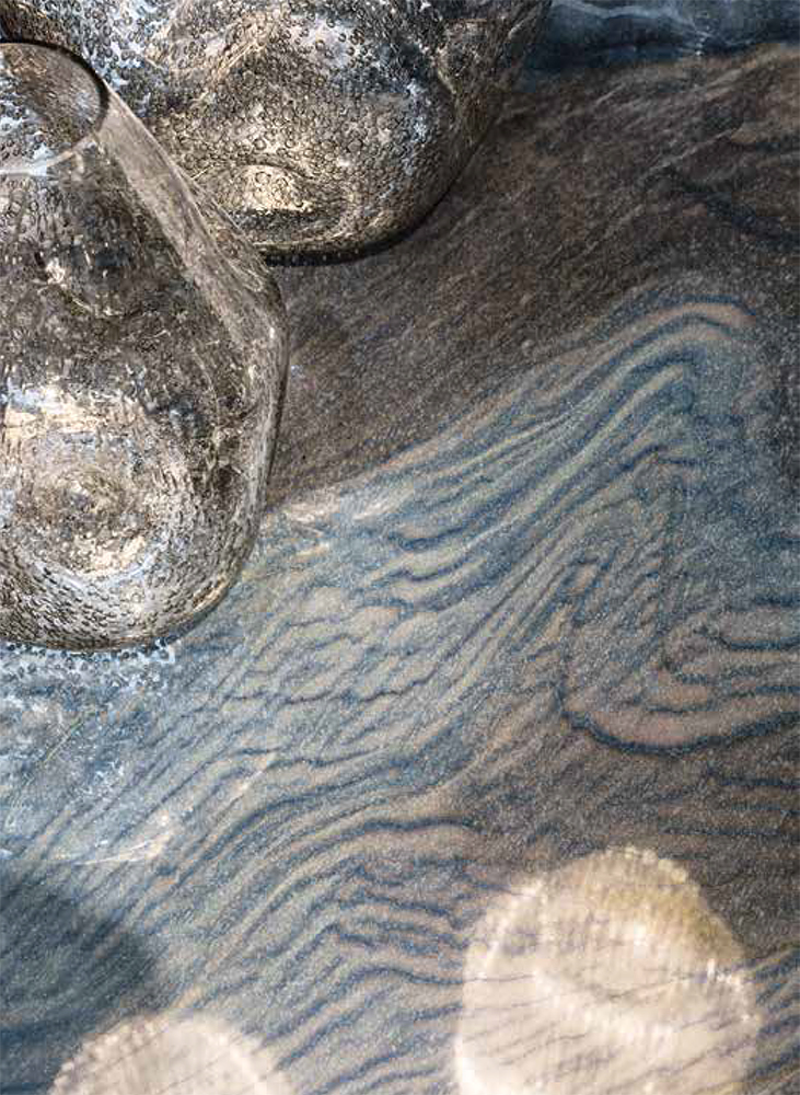 Iride is characterised by the unique shades of the Azul Macaubas marble: the quartzite crystals it is made up of design blue, light blue and golden abstract patterns.