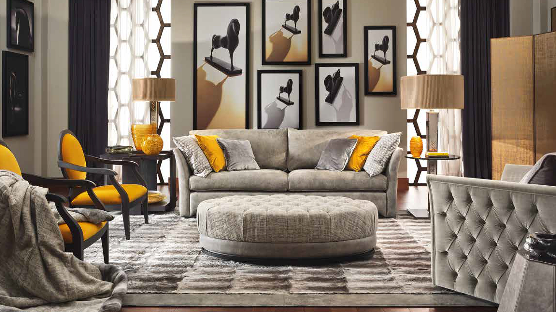 Light and delicate, Gabriel is an unforgettable pouf. Its wide surface is an invitation to relax, and the elegant capitonné pattern makes it the protagonist of luxury living rooms. Refinement and softness merge together beautifully in this creation. Gabriel is the island to land on when you are tired or want to share your free time with others.