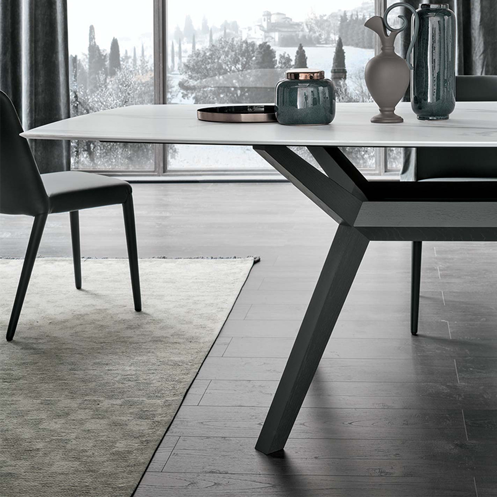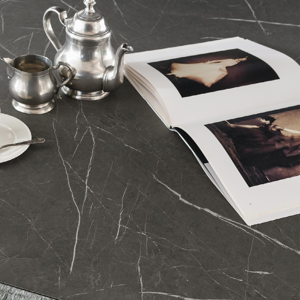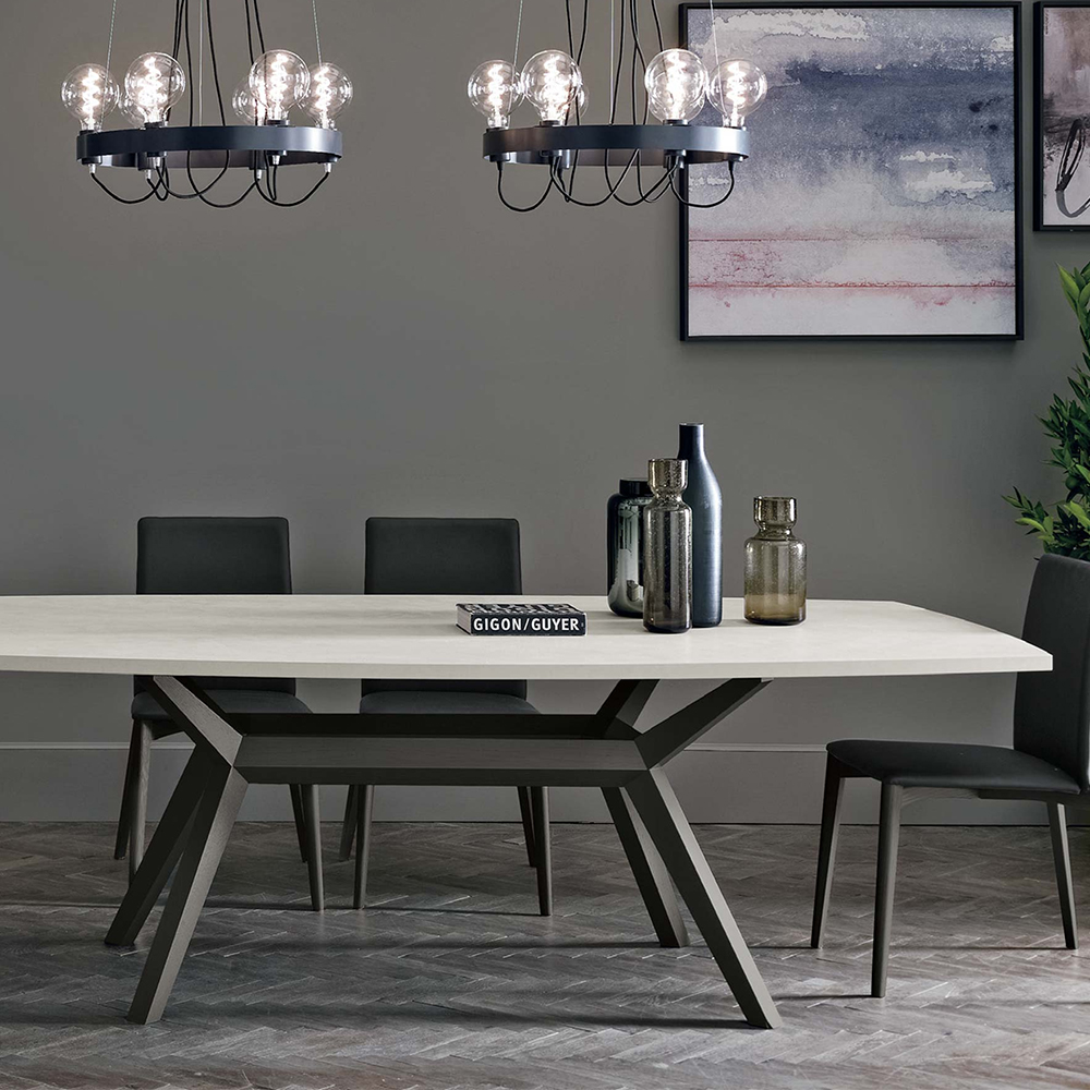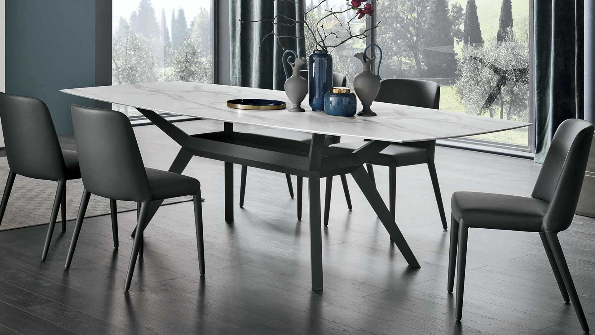 The hpl top of the avalon table adds a new marble-effect texture to the dining room.