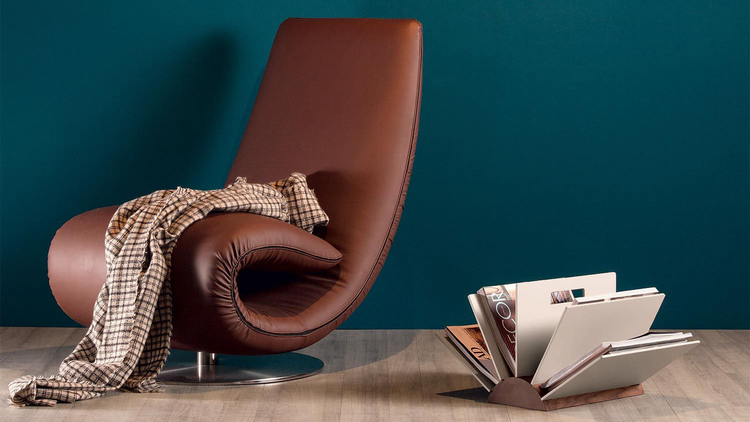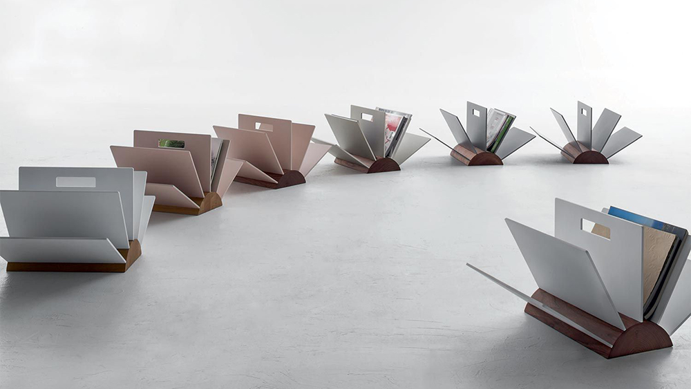 The space was thought to contain books and magazines, and it takes a different, innovative shape, playing with lines and colors, empty and filled spaces.