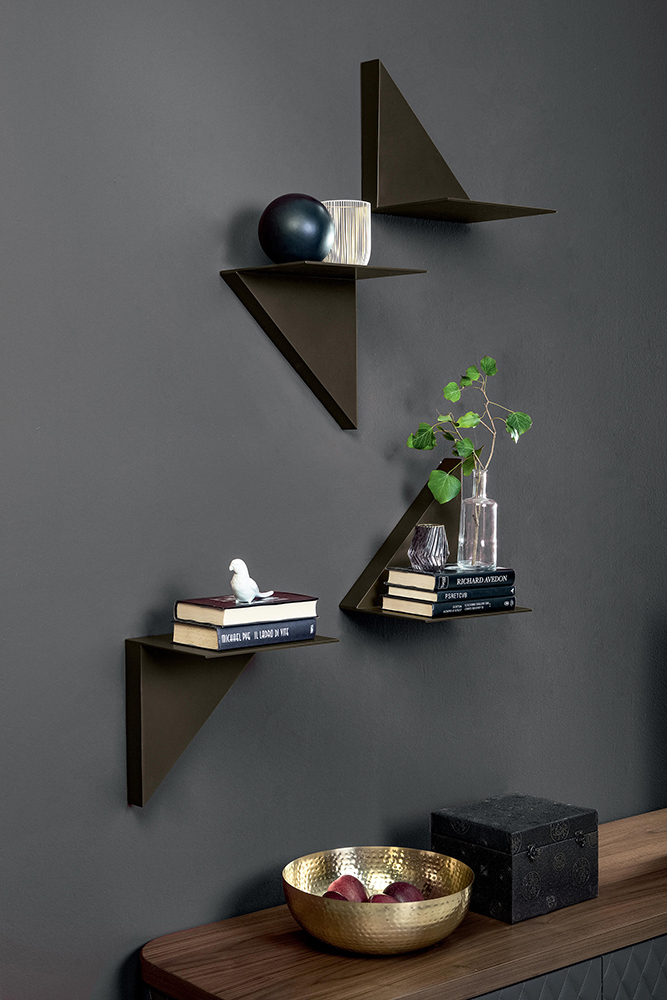 This shelf is suitable to create the most varied compositions, inspired by the sails that float on the sea. Made of lacquered metal and available in various finishes.