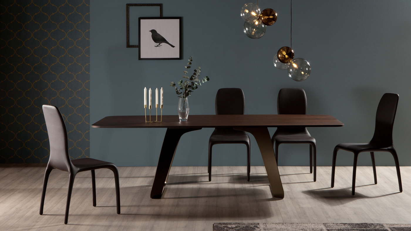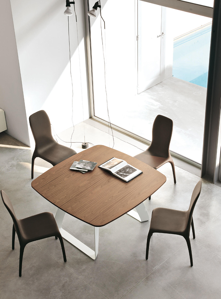 Идеей стола Brenta было создать основание, которое сможет вписаться в различные обстановки: гнутый металл может быть окрашен в белый цвет, цвет каменной бронзы или цвет серого углерода, что делает его идеальным для каждого помещения. Brenta выбирает естественную душу дерева, прочность стекла и роскошь керамогранита.