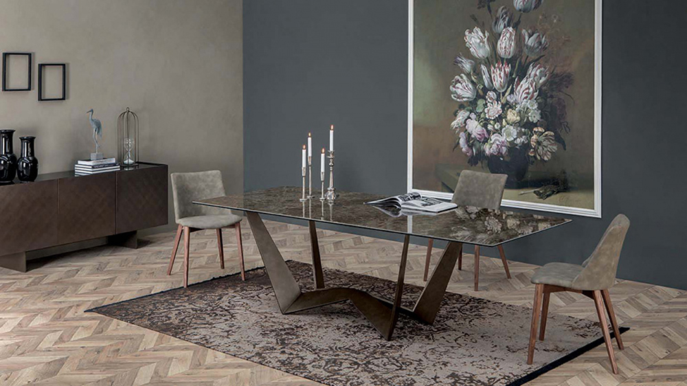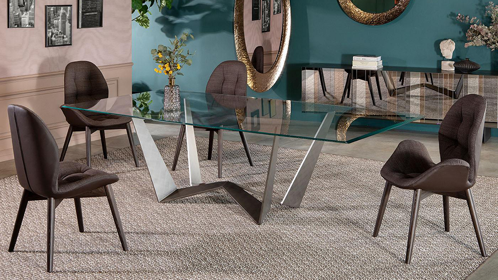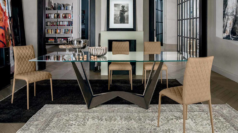 A perfect reversible table for any occasion. A base in painted steel with glass tops available in different finishes. Choose the one that suits you best and create your own living room.