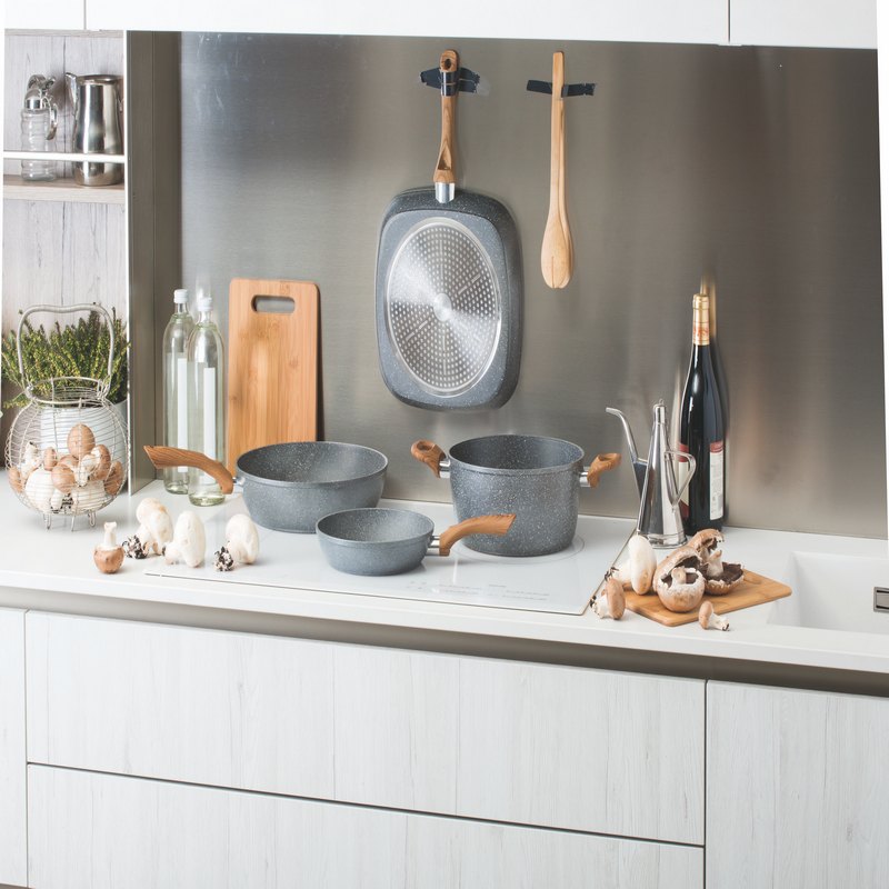 Another great product from Tognana`s Wood & Stone cookware collection, the nonstick frying pan features an aluminum nonstick body and a soft touch, wood effect finish handle.