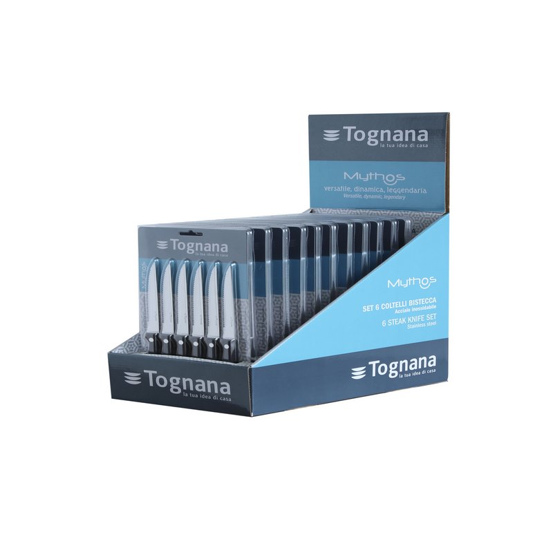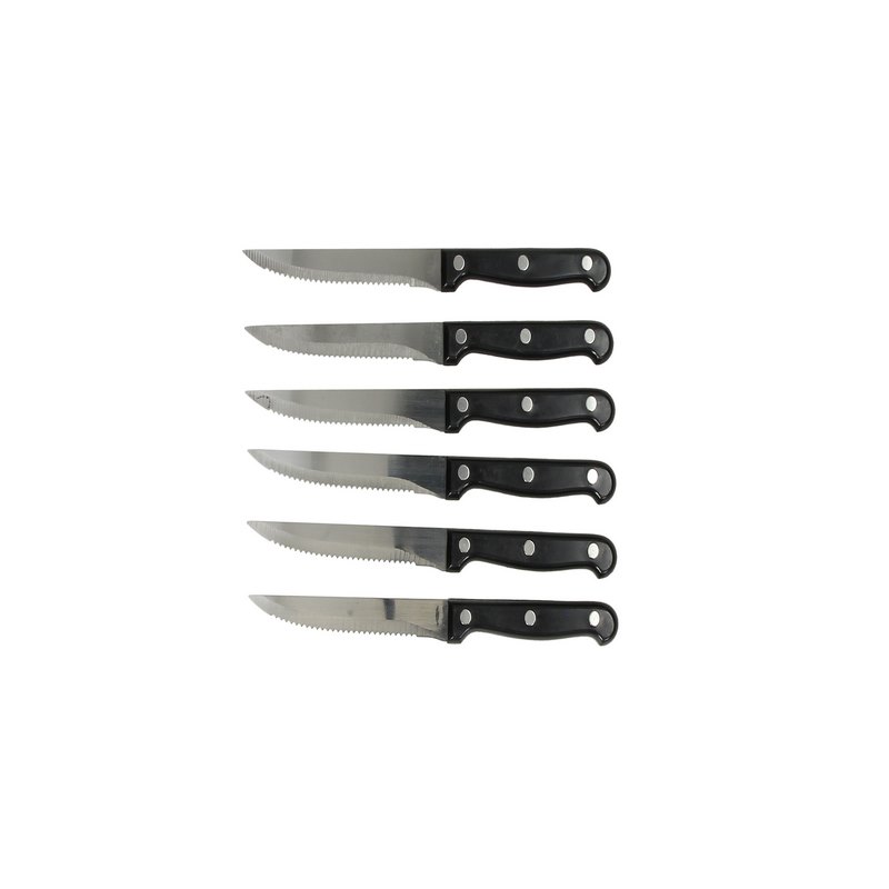 A set of 6 steak knives made of stainless steel. The handle is non-slip and ergonomic. The blades of the knives are made of high quality stainless steel, making it easy to cut and clean.