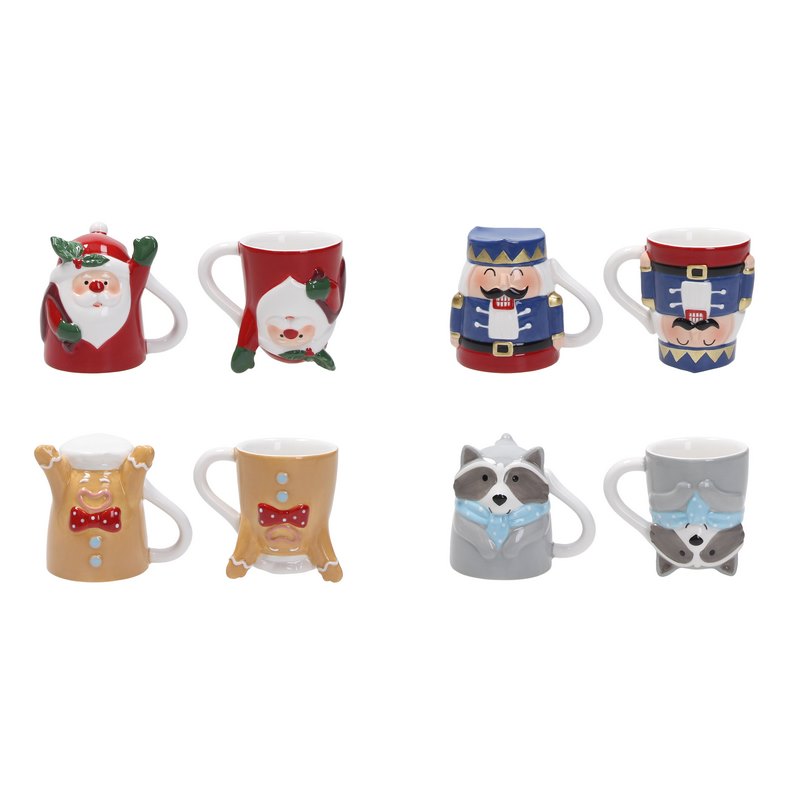 A coffee cup in 4 versions of the Up & Down range is the perfect gift to surprise those you love. Crafted from stoneware and hand-decorated, this coffee cup looks like a fun and extravagant little Christmas sculpture, perfect not only to enjoy good coffee, but also to be placed as a small decoration to complement your festive corners of the house.