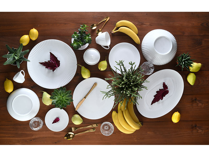 The modern finishes of the Radius collection in real bone china can bring the elegance and carelessness of the moment to your tables.