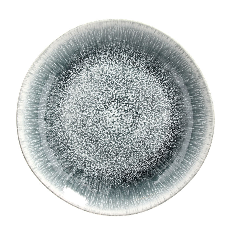 The Blow Up dinner plate is part of a dinnerware set designed by Andrea Fontebasso. Crafted using the reactive glaze technique and craquel technique, this plate is embellished with dotted patterns and a unique grid of cracks between shades of white and grey, making each piece unique and original.