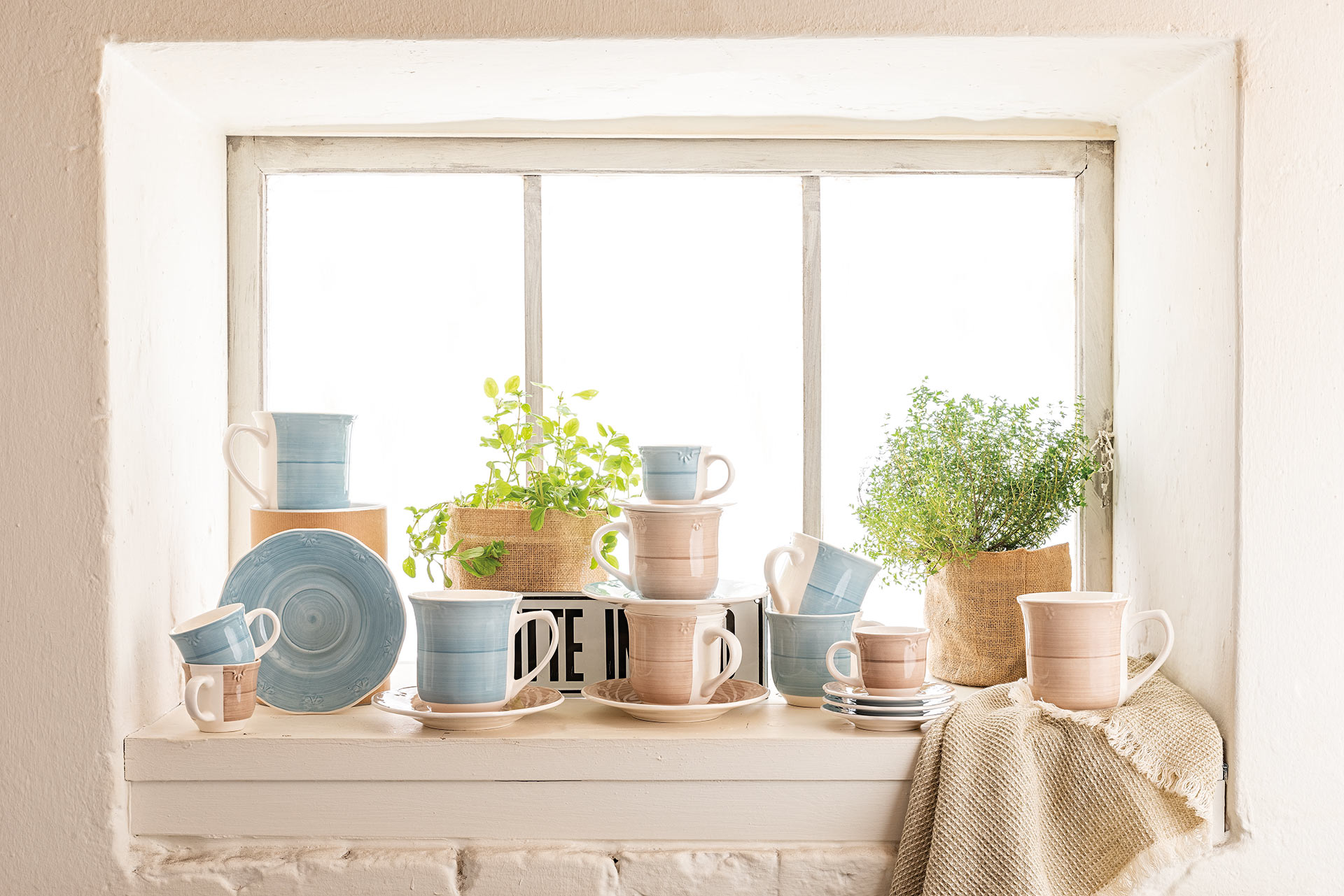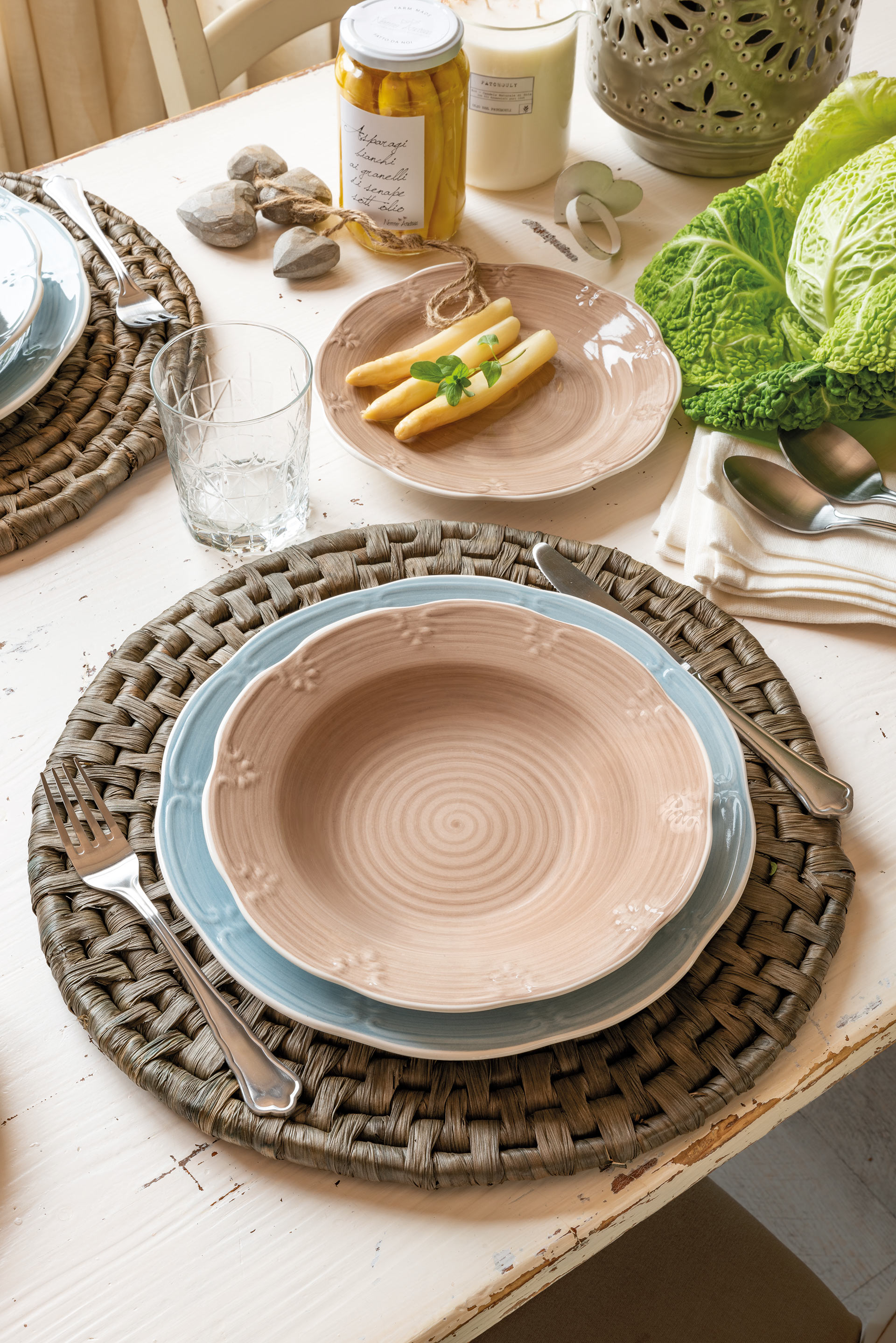 The Shabby Azzurro tableware is crafted in a Provencal mood with embossed embellishments and elegant hand-painted nuances.