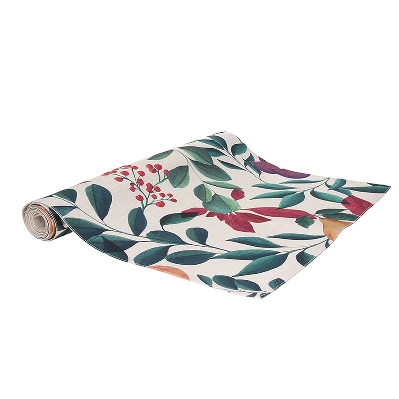 Seasonal fruits and dark shades of blue and purple decorate this table runner, which can be used to decorate a table in the center of your living room or anywhere else in your space, adding taste and sophistication.