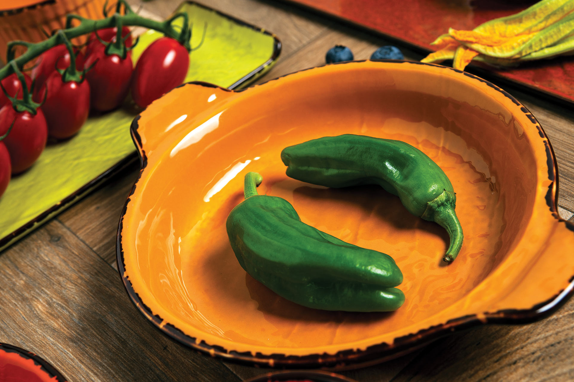 The Vulcania Veggie range surprises with rich colors inspired by natural hues such as vegetables and fruits. The colors seem to be inspired by the different periods and appearance that fruits and vegetables take on as they ripen. With nature-inspired hues, impeccable quality and a shape specially designed for easy and safe handling, the Vulcania Veggie line is the perfect choice for those who want to add color and quality to their meal.