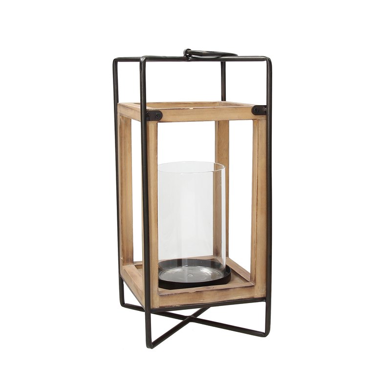 Large lantern with metal support Tonet is a lantern with modern taste and details in metal and wood, ideal as a decorative piece of furniture for the corners of your home.