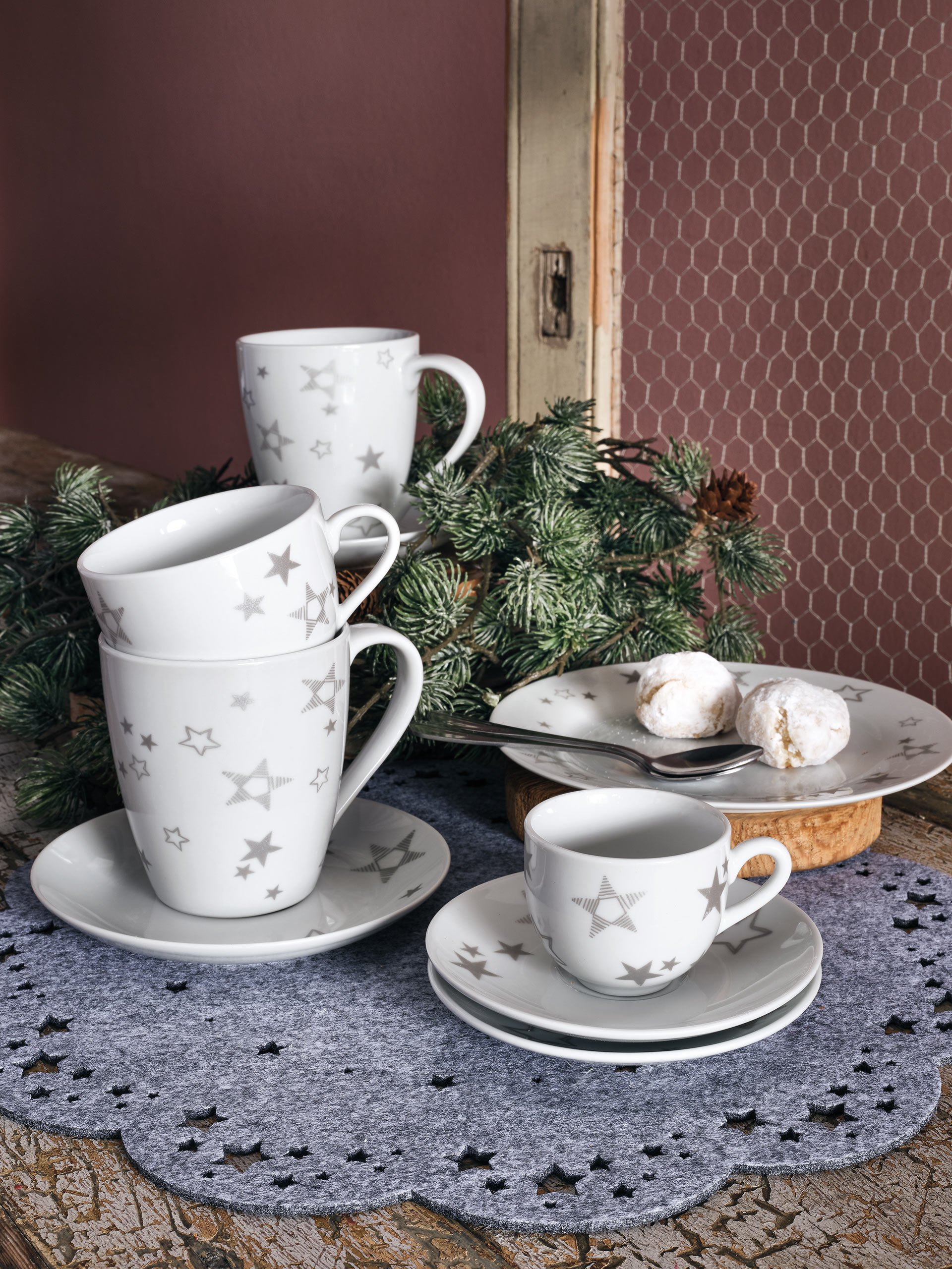 Made of high quality porcelain, this mug is embellished with a galaxy of stars that will add shine and sparkle to your table.