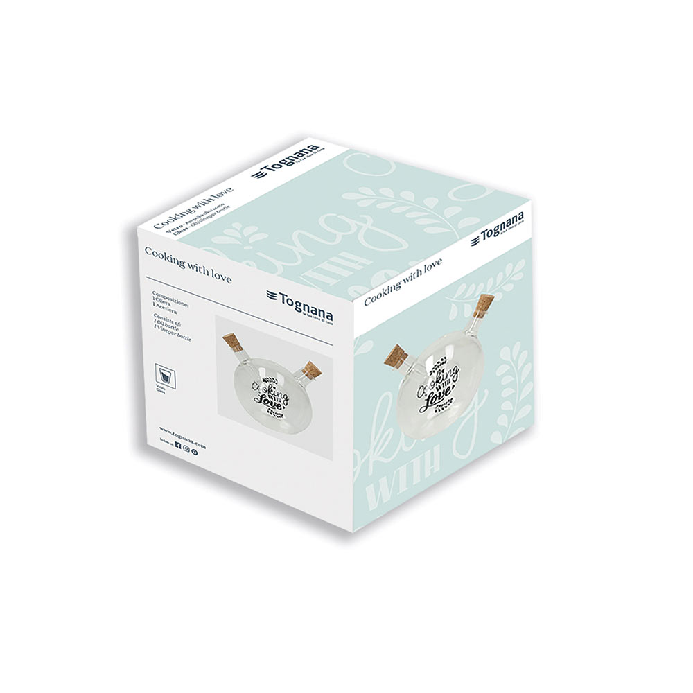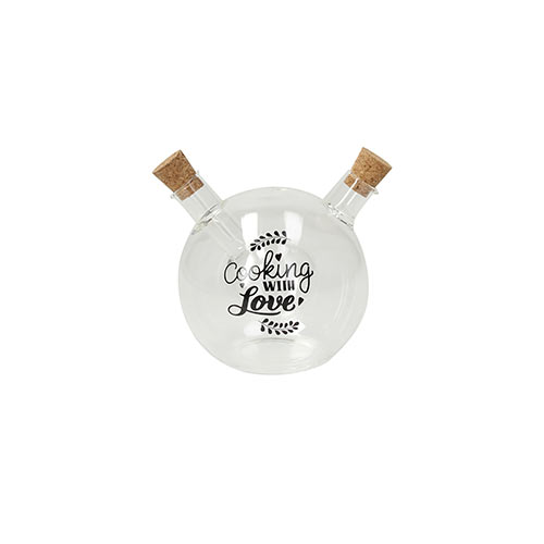The bottle for vinegar or oil from the Cooking With Love line is part of a range of practical table accessories. Perfect for everyday use, this double-mouth bottle in clear glass with black decoration brings an urban touch to your kitchen.