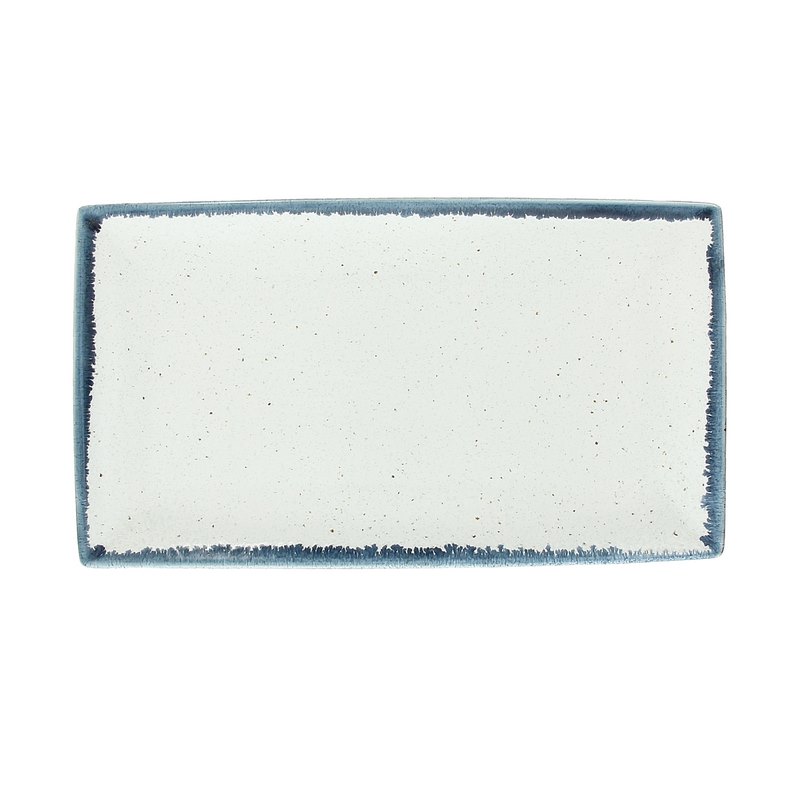 The Organica Mare collection is a new and unusual line of traditional tableware. It is presented in white with dark patches and a blue border.