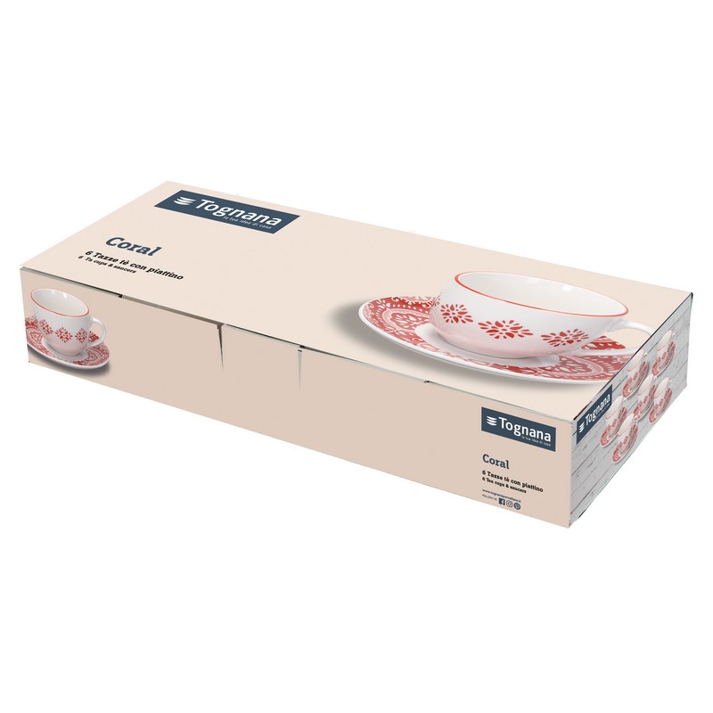 Set 6 tea cups with saucers “Coral”