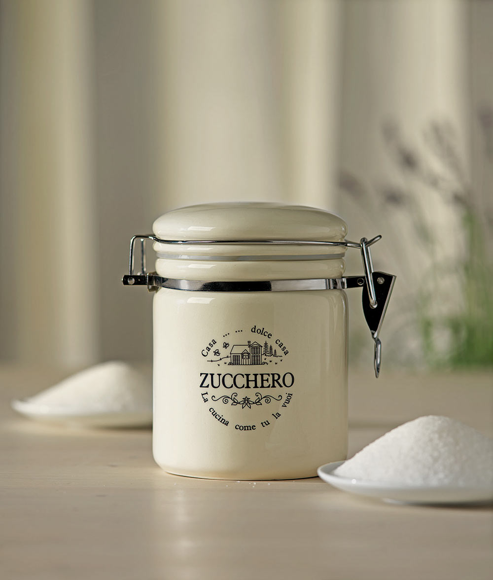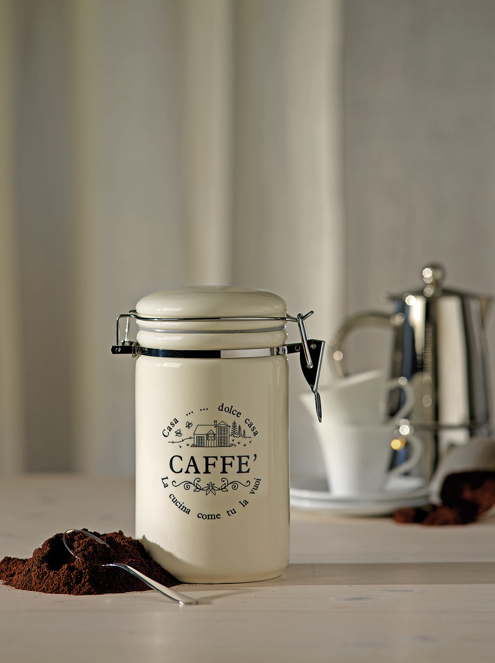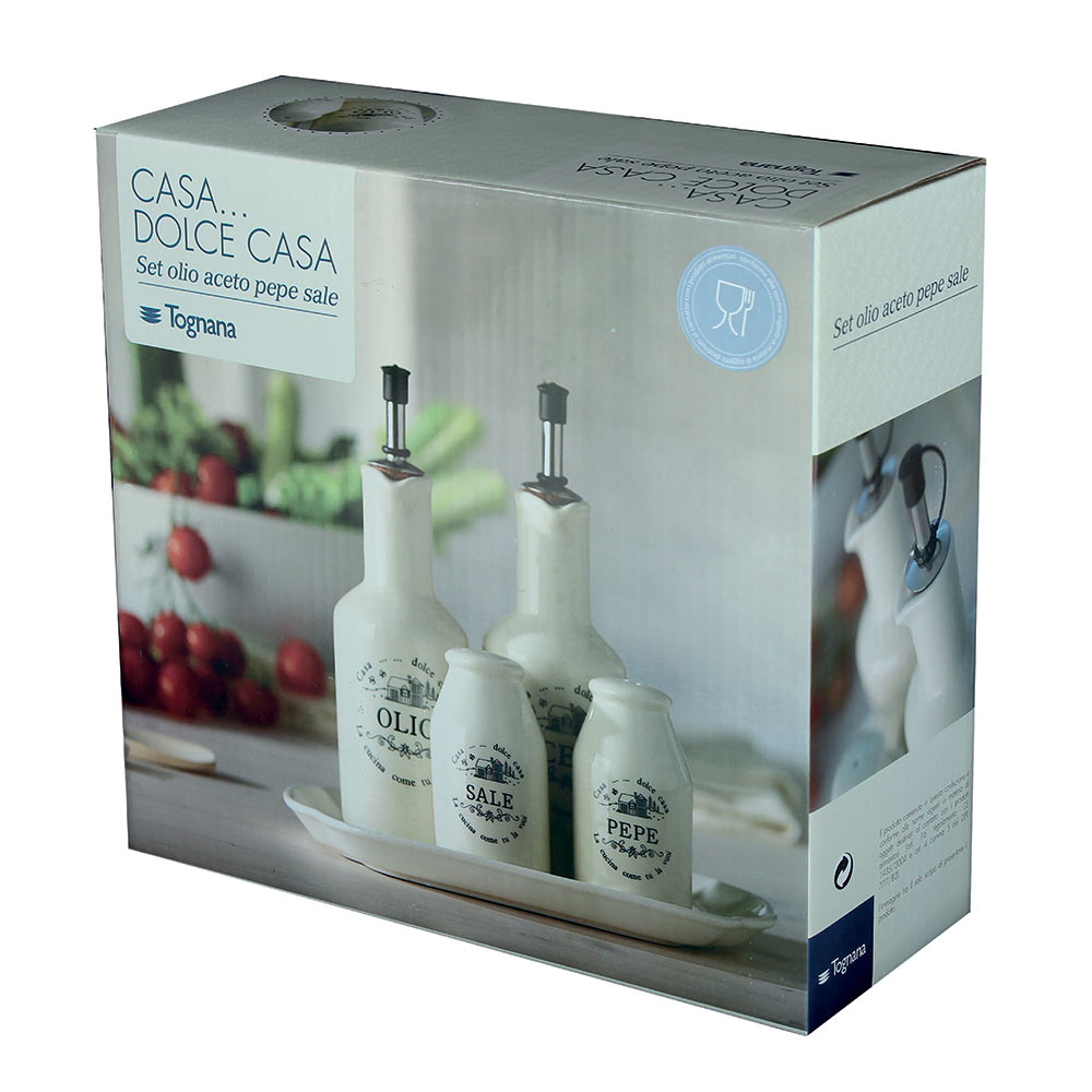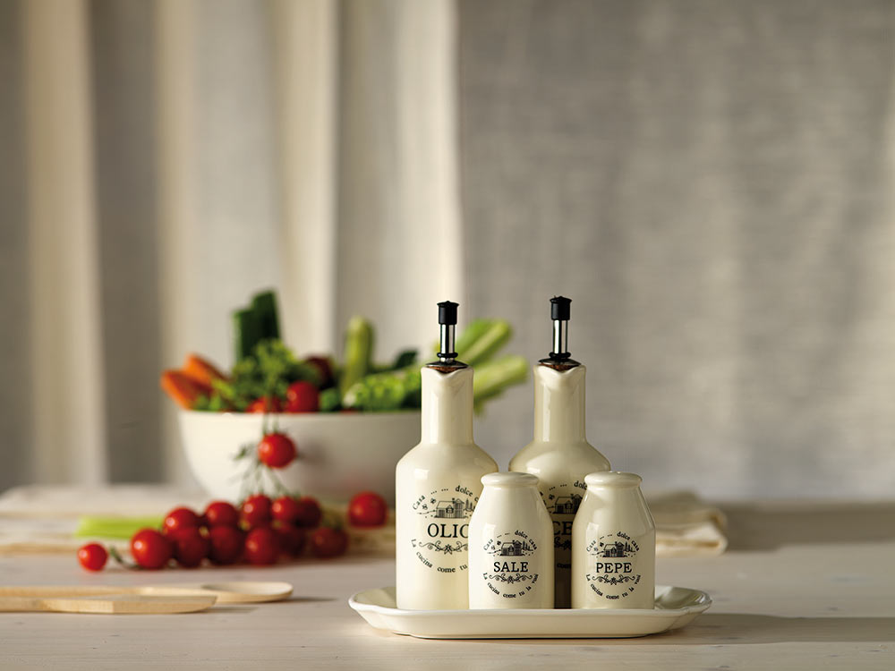 Set of 4 spice jars (oregano, rosemary, sage and thyme) in porcelain with wooden base and metal clasp.