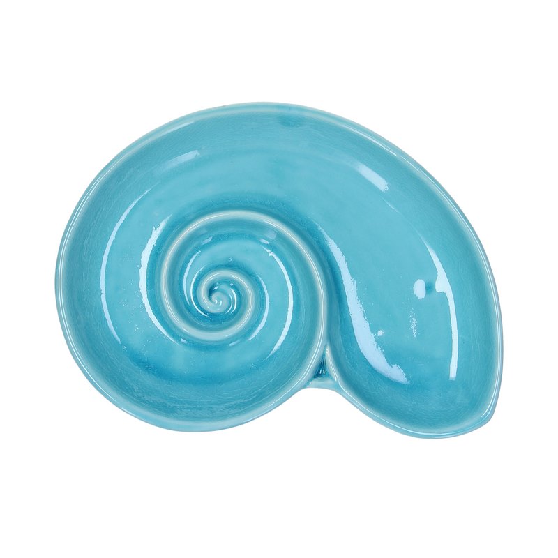 The shell-shaped plate of the Tritone line is part of a characteristic line in shades of turquoise inspired by the marine world and the creatures that inhabit it. This plate is perfect as a decoration in your living room or kitchen, but it can also be used as a serving plate for appetizers during an aperitif. Pairs perfectly with other accessories in the line.