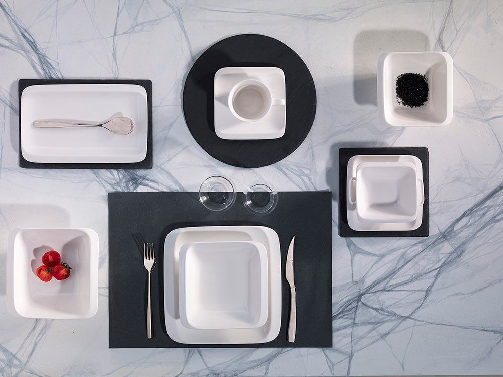 The noble white color and modern shape give the dishes a special elegance, emphasizing the impeccable quality of the products.