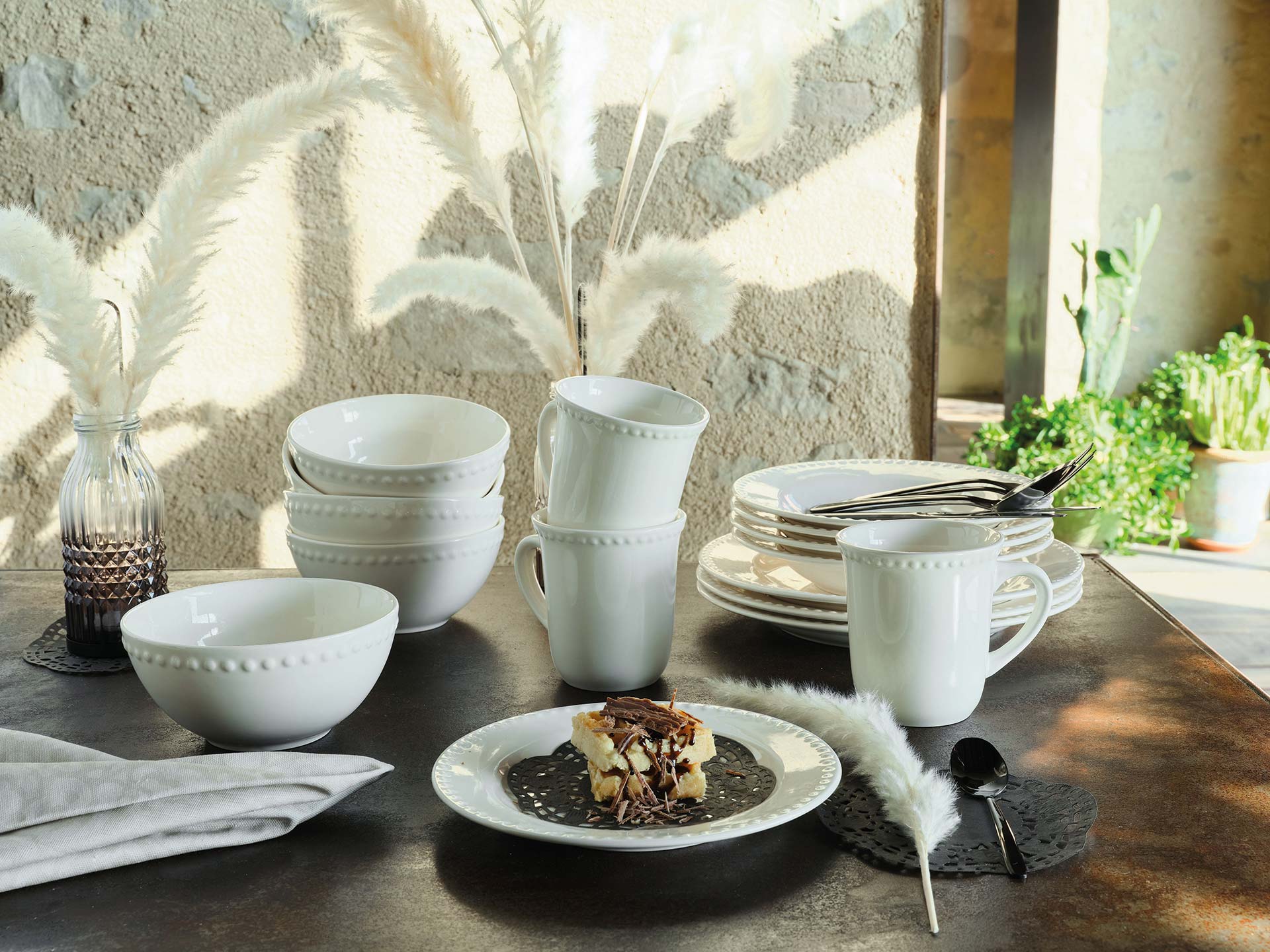 Delicate, modern embossed decor makes this line a versatile product that can be combined with any type of dishware.