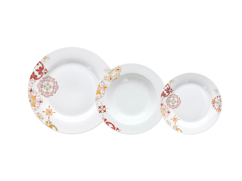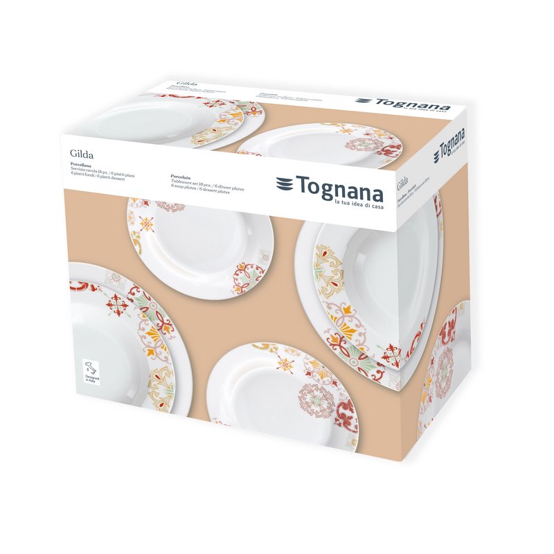 The Gilda dinner service is characterized by a warm and enveloping décor, reminiscent of autumn and its colours. Perfect for any context, this dinnerware set can be paired with accessories in neutrals and browns.