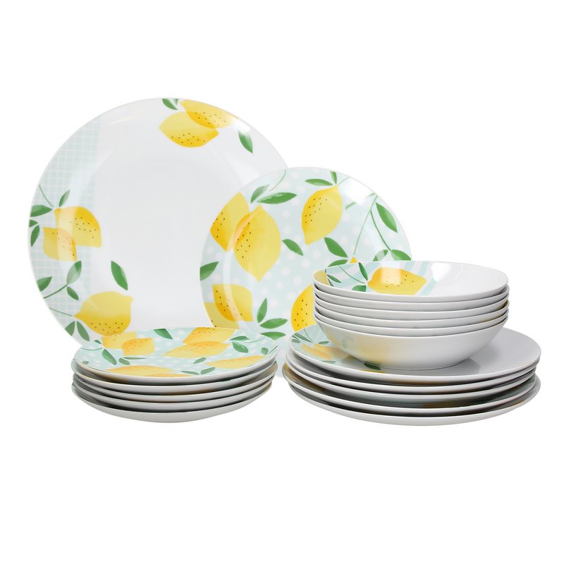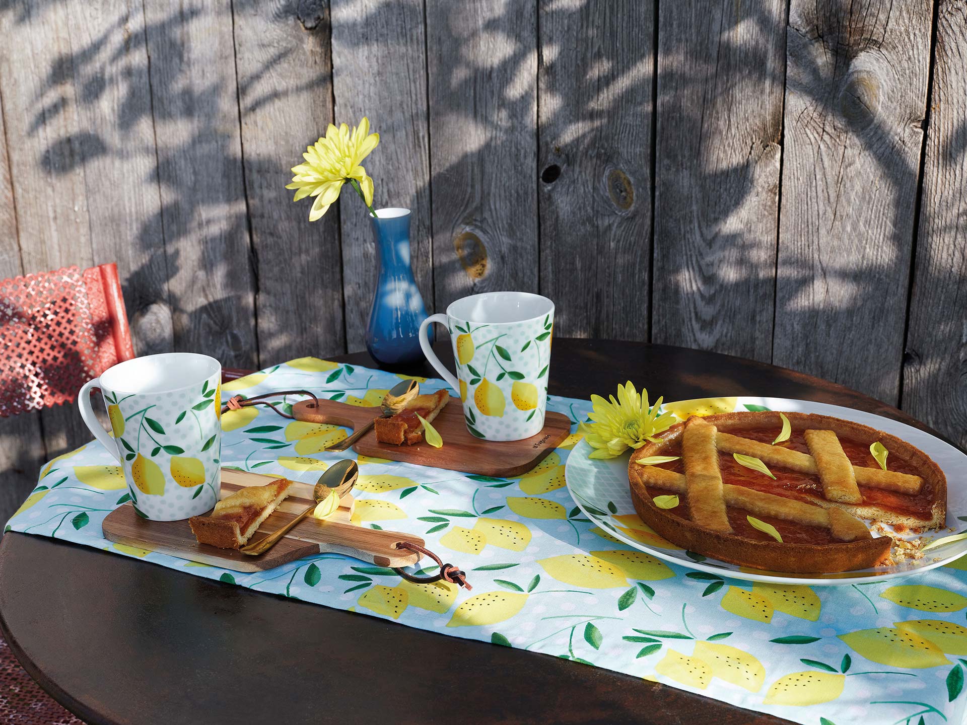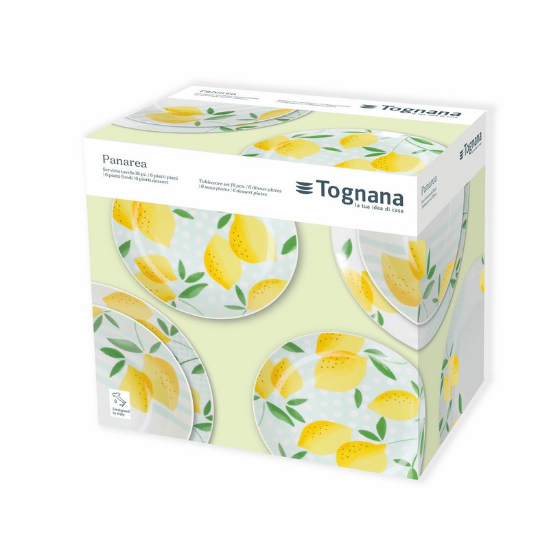 Add vibrant sunshine to your table with the Panarea dinner service. Bright lemon and blue accents adorn this service. It will help you make any event special, whether it`s a Sunday brunch or a family dinner.