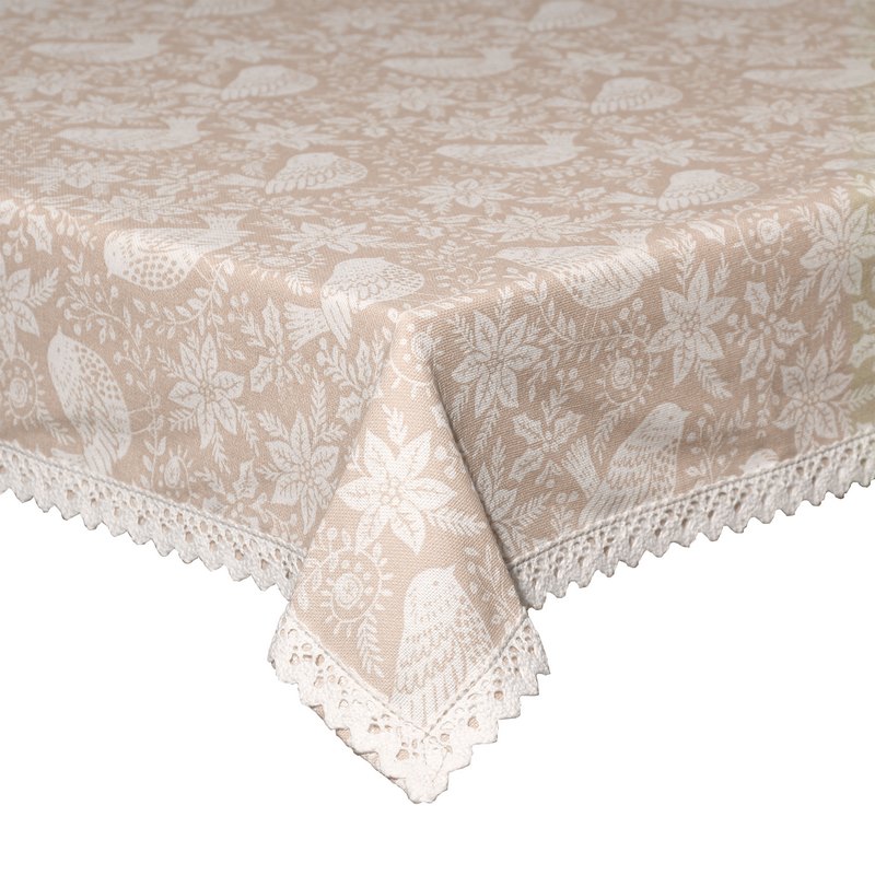 The Gardenbosh tablecloth 150X300 cm by Andrea Fontebasso is part of an elegant collection of cotton and lace textiles in beige tones. Floral prints, garlands and birds embroidered with white lace gracefully and elegantly decorate this classic style tablecloth, perfect for the Christmas period and recreating a sophisticated and special setting for your Christmas dinners.