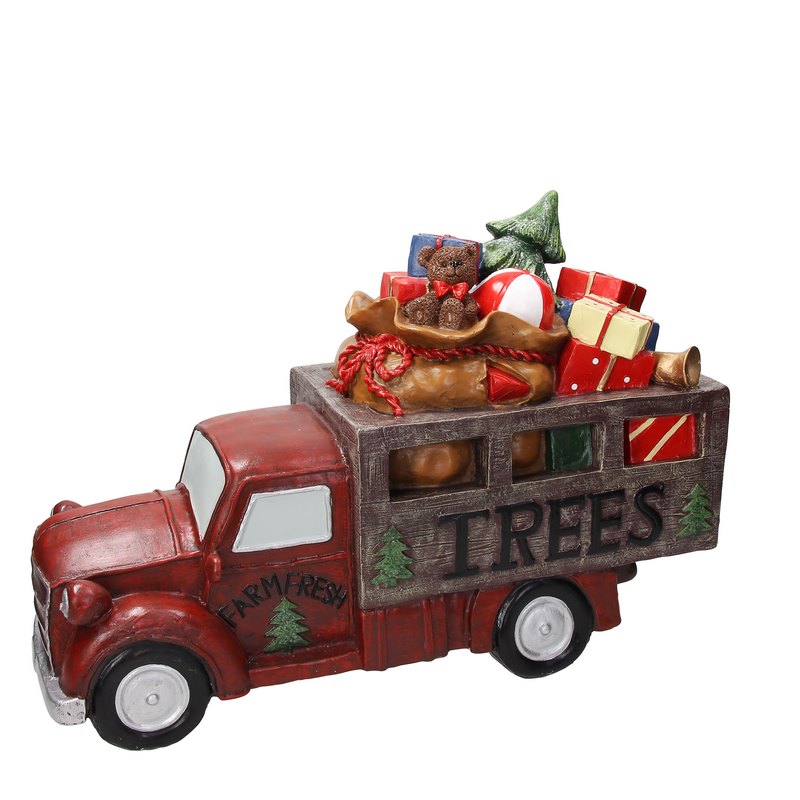 The truck loaded with New Year`s gifts fully conveys the festive mood.