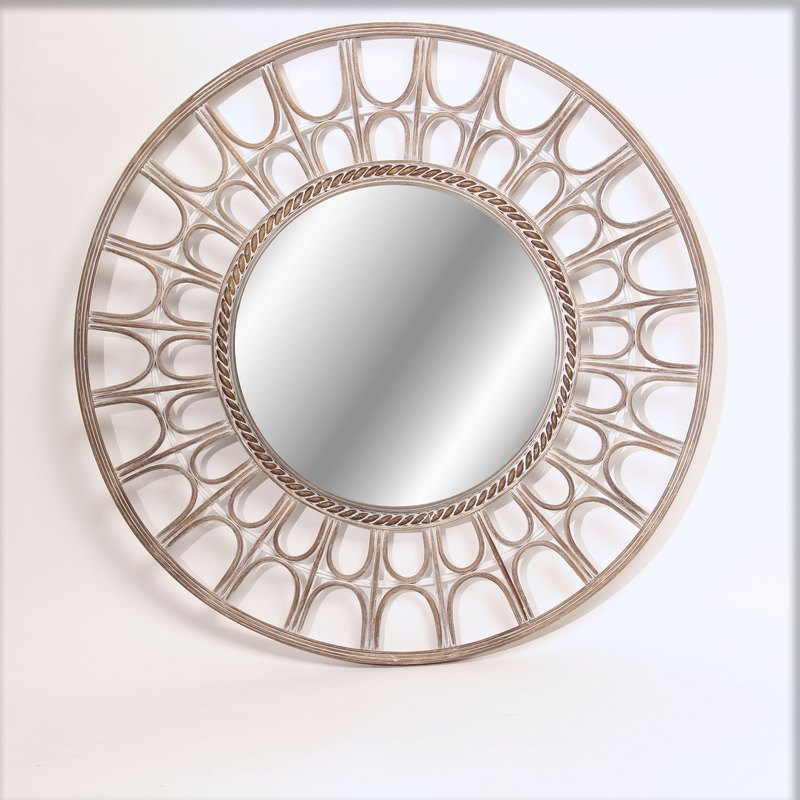 Wall mirror of the Mantra line by Andrea Fotebasso in curved wood, round Roman style. It can decorate any room in your home.