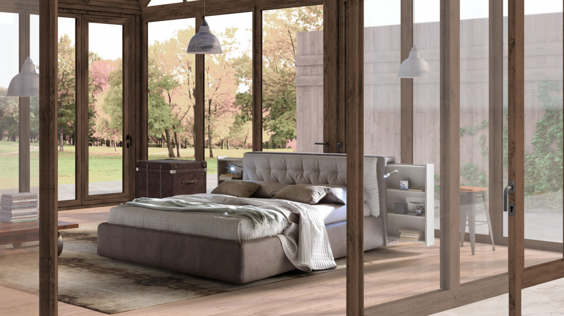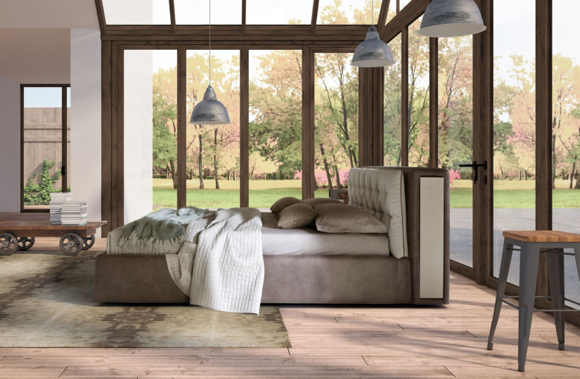 Concision implies utility, and the argument is hereby unfolded by a fresh design: ancient elements relate to modern ones, and Donovan makes no exception with its vintage glares. A refined quilting with retrĂ² recollections ennobles the outline of the headboard; the latter is not anymore a mere structural component but rather it has become a valuable chest that serves as storage compartment - together with its miniature foldable shelves. This is truly a different way to revive the concept of bedside tables.