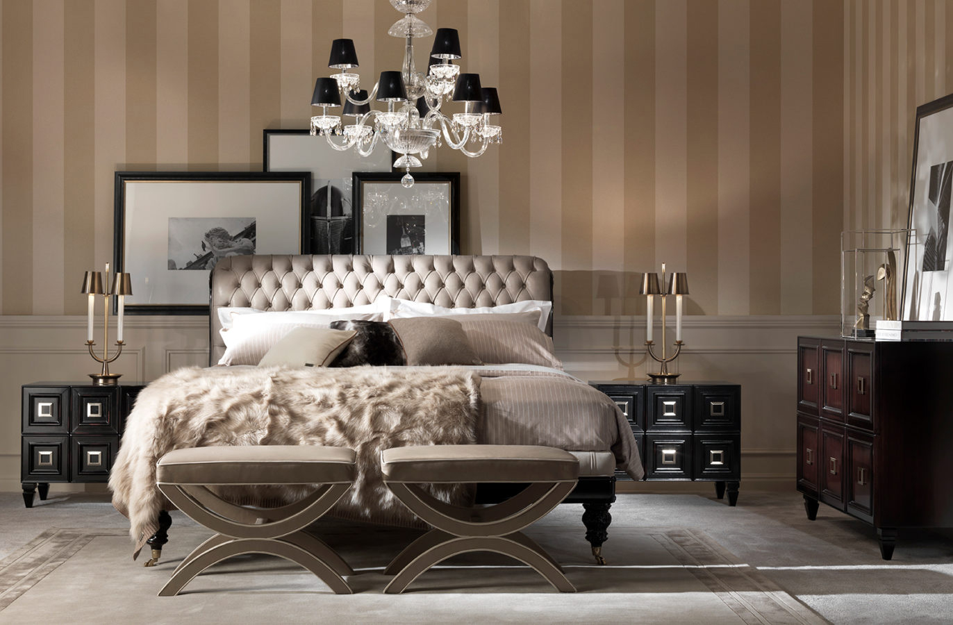 Characterized by destressed shades on woods, slightly antique finishing and brass details, Perry night tables complete your setting with its vintage charm.