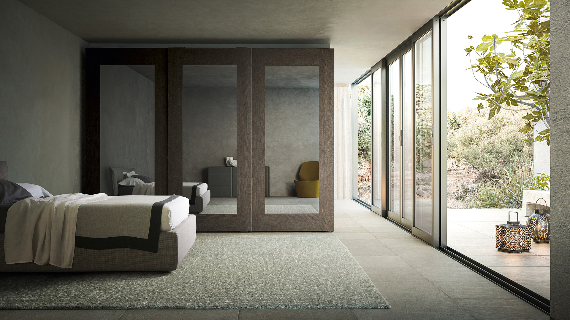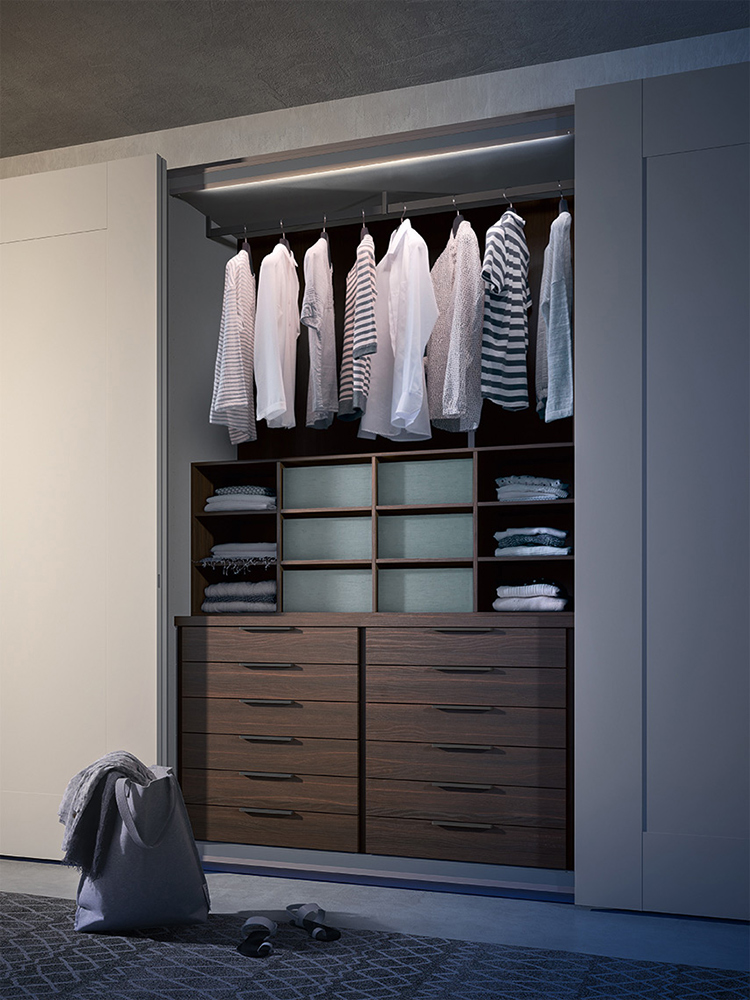The Quadra wardrobe with sliding door is an essential accessory in a respectable room: it completes the room dedicated to relaxation, optimizing the spaces and embellishing them.