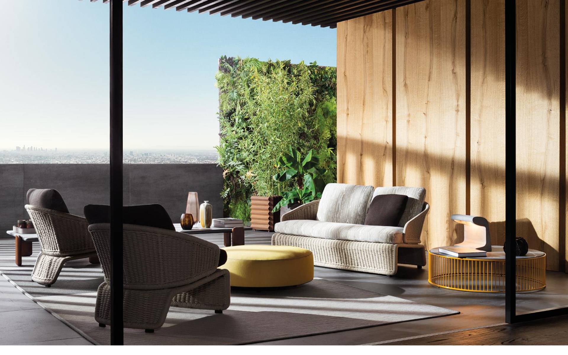 The Halley “Outdoor” family includes an armchair, footstool, sofa and daybed. Thanks to their streamlined proportions, they bring stylish, elegant decor to any setting, even urban and hospitality spaces.