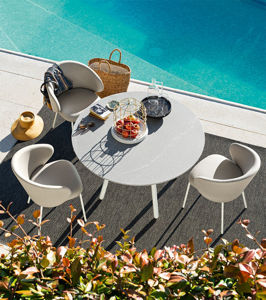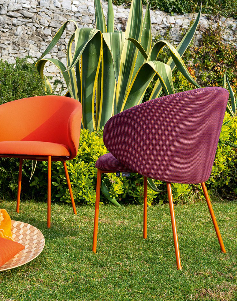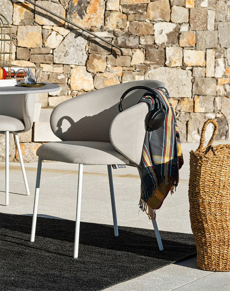 Tuka has a tubular-metal frame which has been treated and coated for outdoor use. The seat and large wrap-around backrest have been filled with a water-draining padding. Made from water-repellent Sunbrella® fabric, the covering protects against the fading effect of UV sunlight, as well as being mouldproof and stainproof. You will be looking for reasons to invite friends around for a lemonade on the patio!