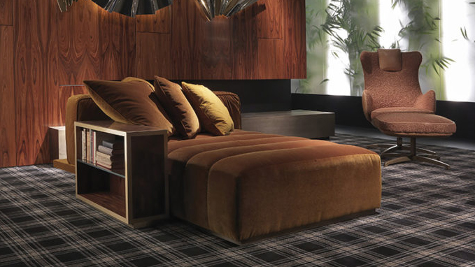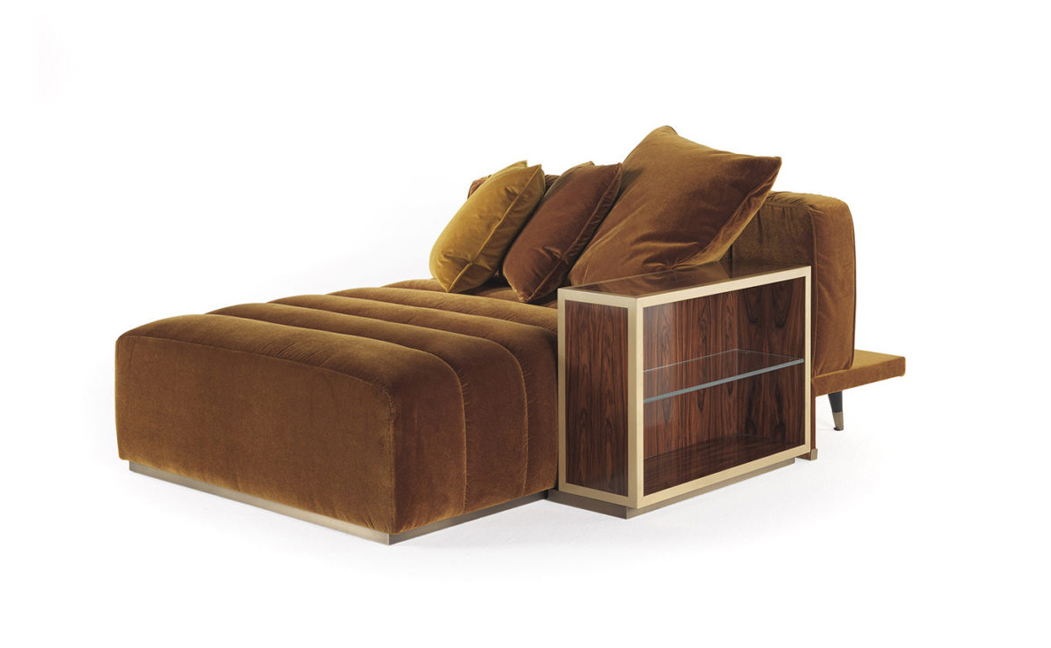 Comfortable and with a bold personality, the Highlander chaise longue can be used as an independent element or as a component of the sofa. The original prerogative of the line is the possibility of customization in formal and upholstery terms.
