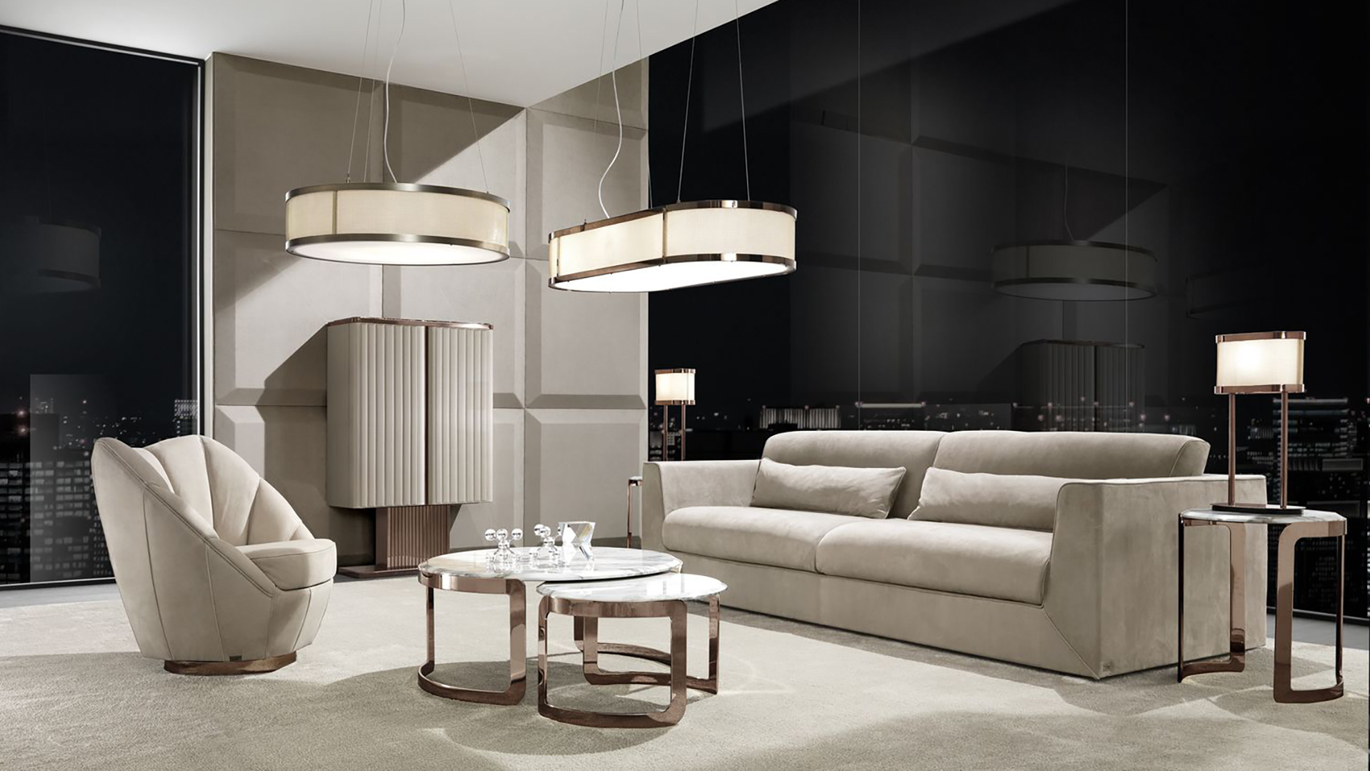 The Royal armchair on a round base looks very comfortable. Its design is somewhat reminiscent of a sea shell, the resemblance to which is emphasized by the voluminous vertical screed of all elements. The chair has a closed structure, which is hidden by layers of filler and upholstery fabric. The outside of the case is trimmed with decorative stitching.