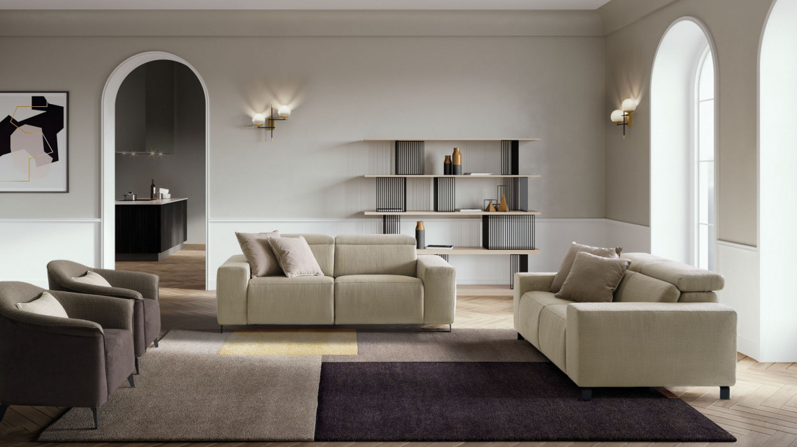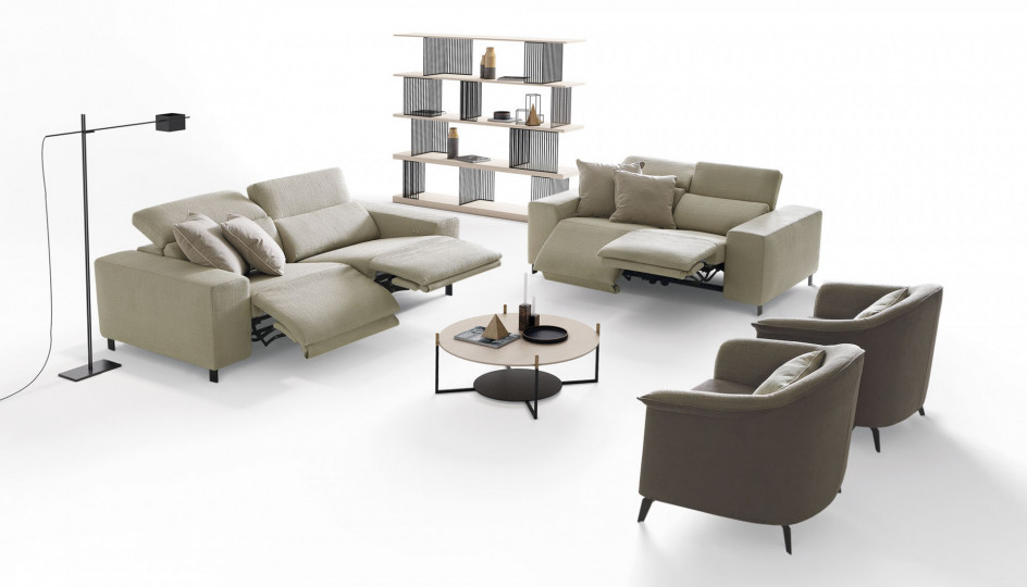 Sebastian looks traditional, but it is innovative and modern at heart. This sofa successfully meets expectations of comfort and functionality, thanks to the solid structure of its shapes and the removable upholstery. It is also an interpreter extraordinaire of modern necessities: the headrest breaks up with the stillness of the model and anticipates the dynamism of the innovative relaxation device.