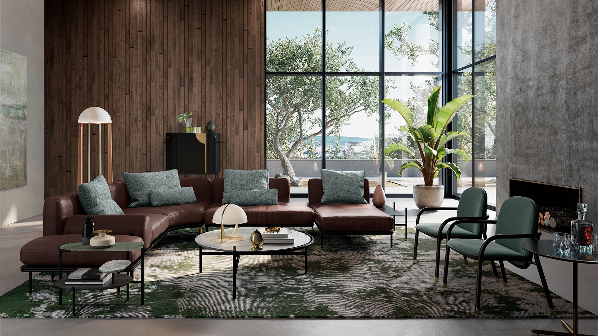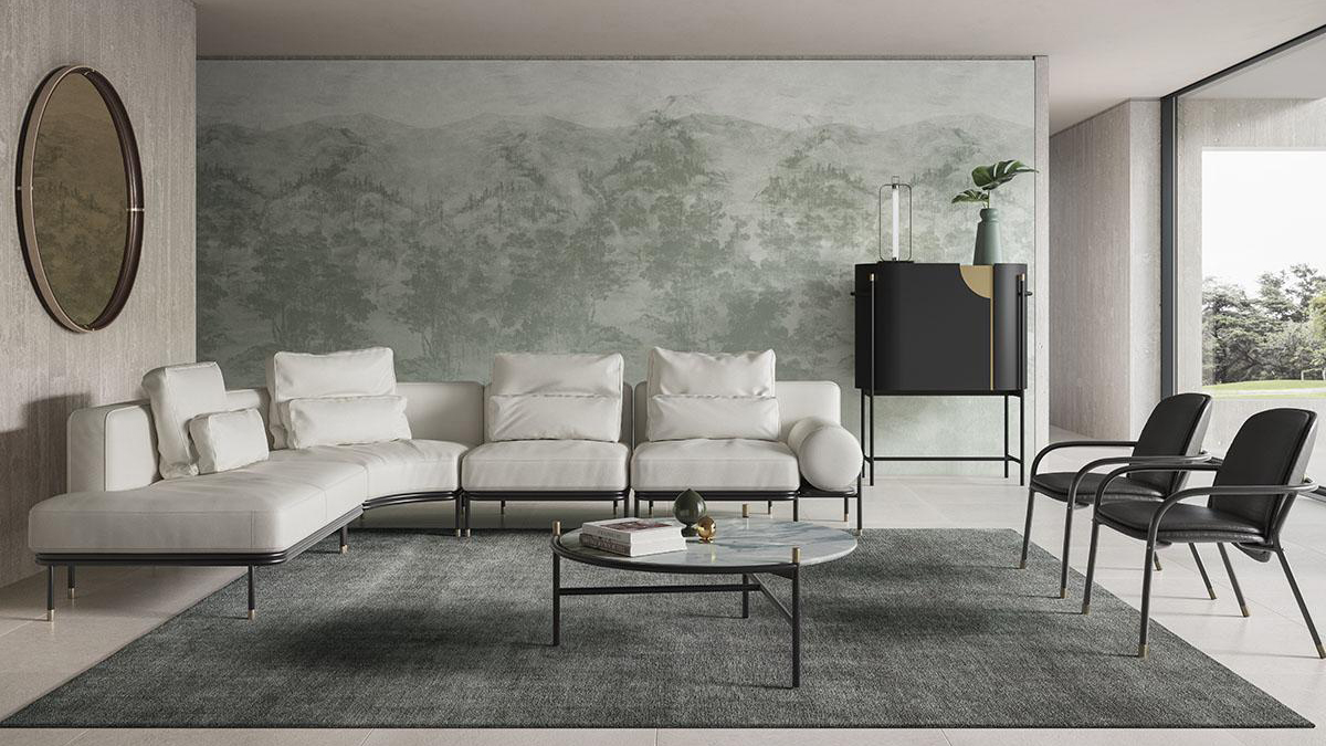 Selva is a modular living system which bridges the gap between two different sources of inspiration - a futuristic aesthetic and Art Nouveau. The former gives it a distinctive geometric constructivist design which is counterpointed by the sensual generous volumes associated with Art Nouveau, producing a sensation of elegance, comfort and luxury.