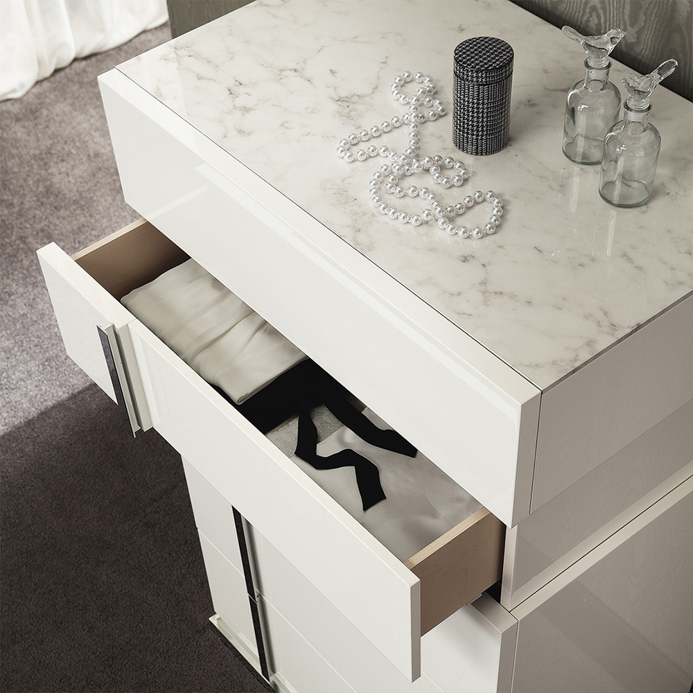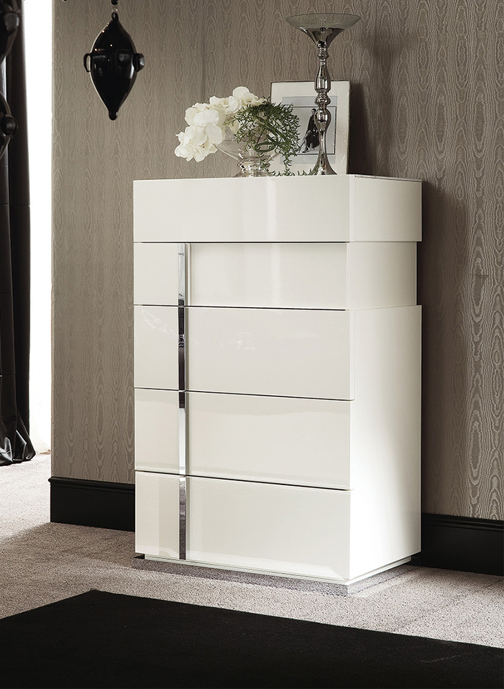 Այս հավաքածուն առանձնանում է երեսպատման նրբագեղ սպիտակ փայլով, քրոմապատ ներդիրներով, տումբայի, աթոռակի և կոմոդի շքեղ վերնամասերով՝ Carrara սպիտակ մարմարով երեսպատմամբ։ LED լուսավորությունը բարելավում է Canova-ի ընդհանուր դիզայնը՝ լուսավորելով մահճակալի հիմքը և գլխամասը: