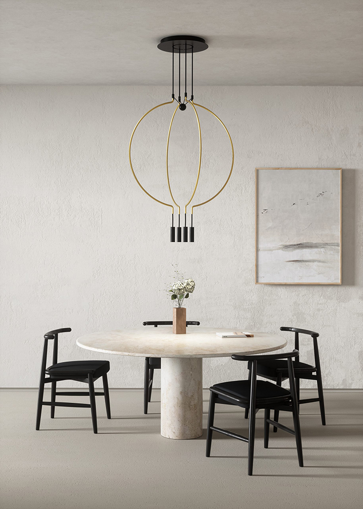 Մոդուլային թեթևություն և նրբագեղություն: Liaison-ը խոսում է երեք երկրաչափական արխետիպերի կատարյալ հավասարակշռության մասին՝ գունդը, շրջանը և գլանը կազմում են համակարգ, որը ներառում է և՛ մեկ կախազարդ, և՛ մի քանի կոմպոզիցիաներ: