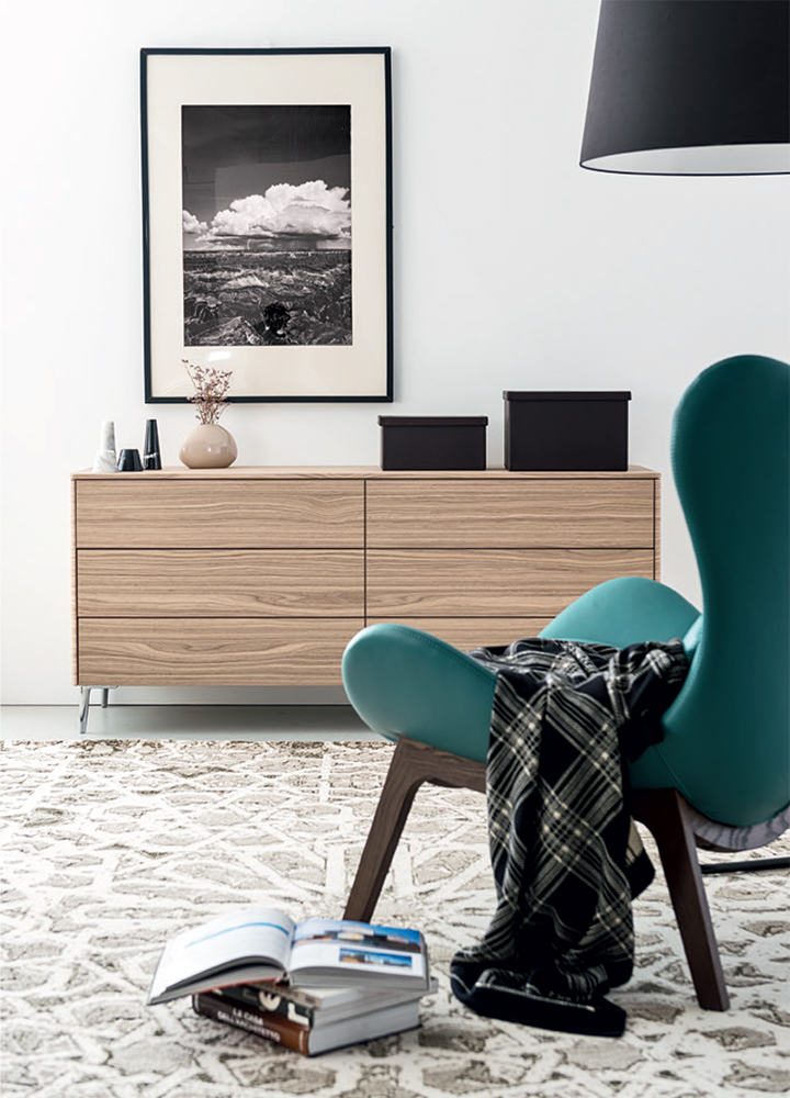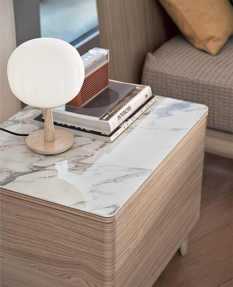 Boston տումբան փայտե կարկասով և երկու դարակներով, որոնք հագեցած են push-pull բացման համակարգով և փափուկ փակման մեխանիզմով: