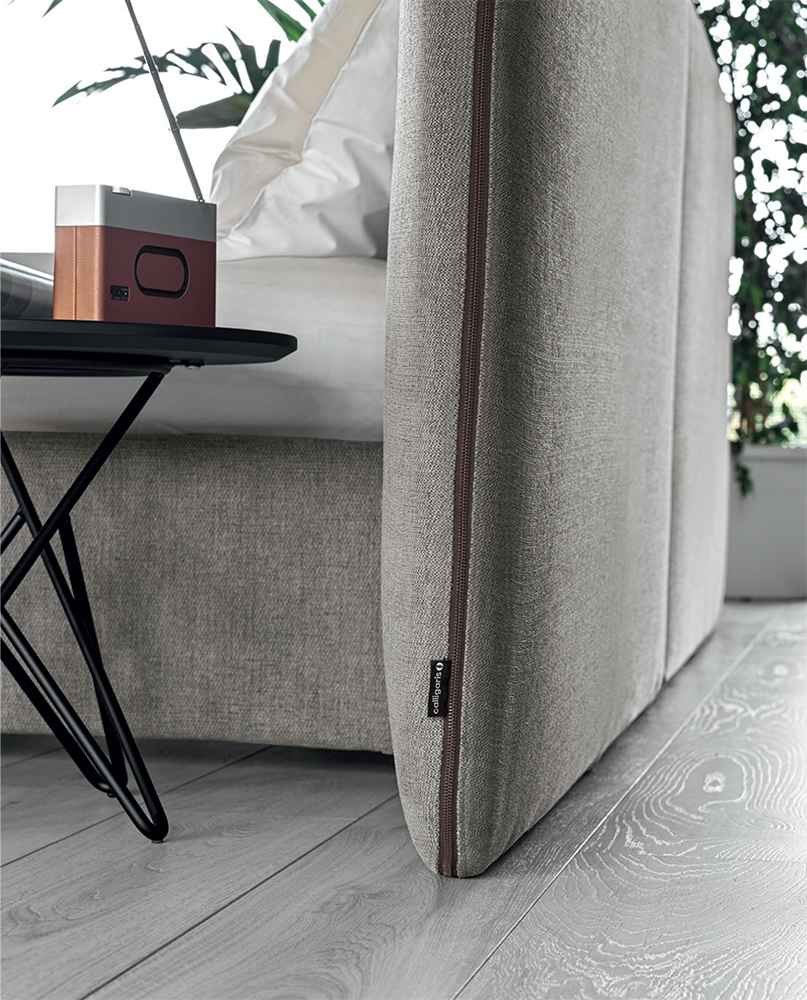 Zip-ը բազմակողմանի է և հեշտ, նրբագեղ դիզայնով մոդել է, որը ոգեշնչված է ընդհանուր կենցաղային իրից՝ կայծակաճարմանդից: Հասանելի է բեժ, շագանակագույն, բաց մոխրագույն կամ մուգ մոխրագույն գույներով, կայծակաճարմանդը դեկորատիվ և ֆունկցիոնալ տարր է, որը պարզ աքսեսուարը վերածում է ձեր պահանջներին լավագույնս համապատասխանող իրի: Zip փափուկ մահճակալն ունի ամբողջովին հանվող գործվածքից կամ կաշվե ծածկոցներ, պլեքսիգլասից ոտքեր և ֆիքսված կարկաս: